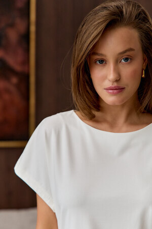 Футболка свободного кроя с элегантными завязками позволяет регулировать посадку по фигуре, создавая при этом игривый и женственный силуэт. Нежный материал ласково обнимает тело, даря ощущение уюта и расслабления. Это идеальный выбор для тех, кто ценит комфорт, не жертвуя при этом стилем.