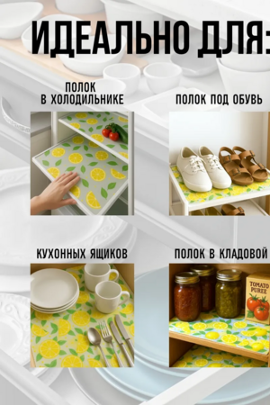 Эти коврики для холодильника легко моются, не имеют запаха и защищают поверхности от микробов и грибков. Благодаря своему красивому дизайну коврики украшают ваш холодильник, создавая уют и порядок. Их нескользящий слой предотвращает смещение посуды, а универсальность позволяет использовать их не только в холодильнике, но и в других местах дома. Благодаря передовым производственным процессам наши коврики отличаются высокой прочностью и долговечностью, что делает их более эффективными и надежными по сравнению с другими продуктами на рынке. Лимонный дизайн ковриков добавляет уют и эстетику в интерьер.