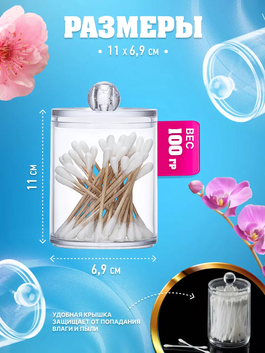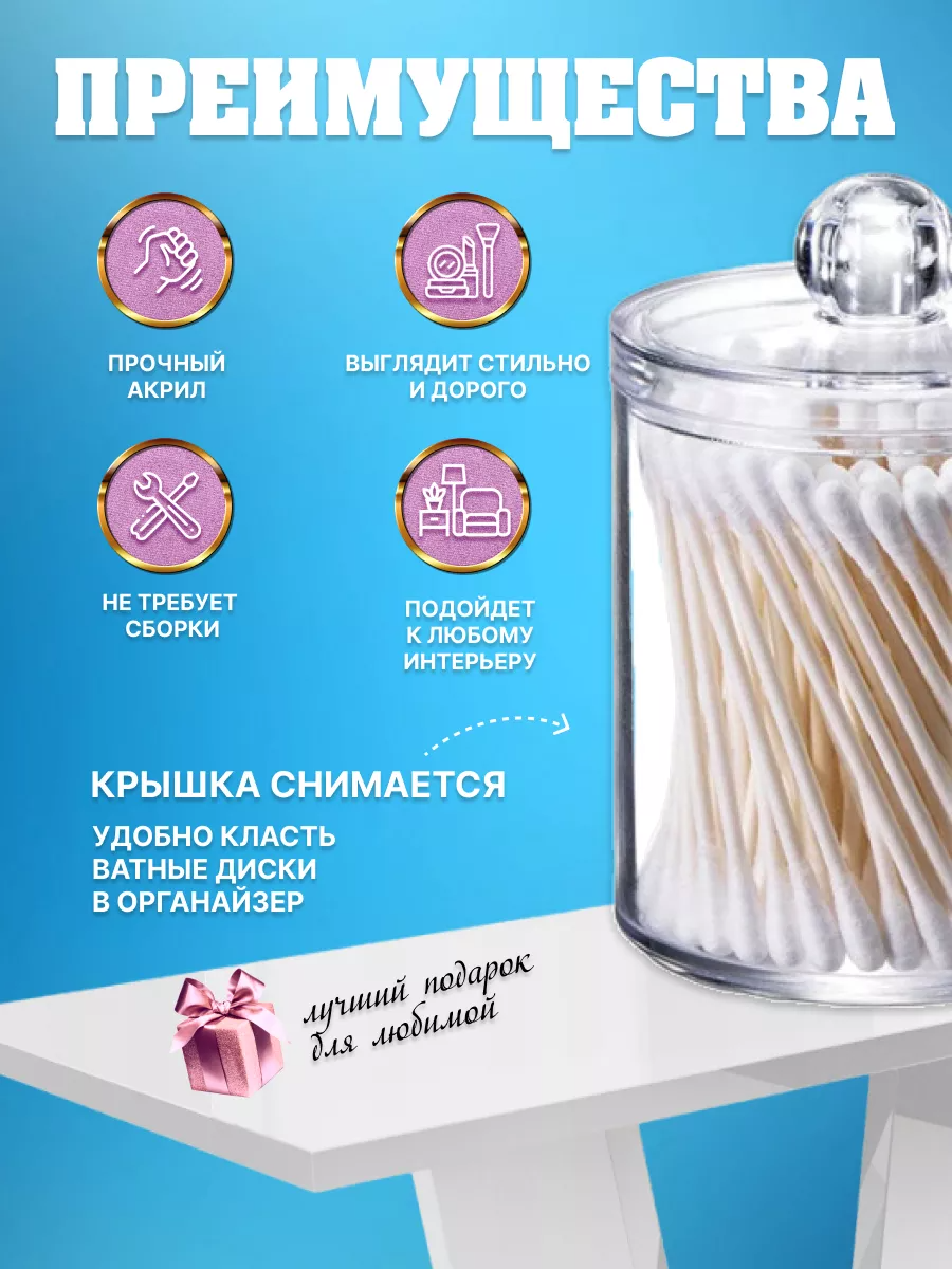 Органайзер для ватных палочек - это удобный контейнер для хранения палочек. Вы забудете о открытых пачках, которые не красиво смотрятся и из которых все рассыпается. Каждая девушка и женщина найдет ему применения. Эти расходные материалы используют для ухода за маленькими детьми, в медицинских и косметологических кабинетах и даже салонах. У каждой домохозяйки есть принадлежности для ухода за кожей, теперь у них будет свое место в ванной или столик для макияжа. Прозрачная коробочек или баночка защитит от пыли и брызг воды, средства личной гигиены. Легко моется. Подставка универсальная позволяет выбрать наиболее подходящий вариант для удобного хранить ваши нужные предметы в квартире. Удобны для подростков, девочек разных возрастов и обеспечить удобство при использовании и хранении ватных палочек. Не только удобство и практичность являются преимуществом специальных емкостях - органайзеров, они также могут быть дизайнерским элементом интерьера. Обеспечивает быстрый доступ к содержимому, благодаря этому использование станет удобно. Ватные палочки хранят в вертикальном положении.
