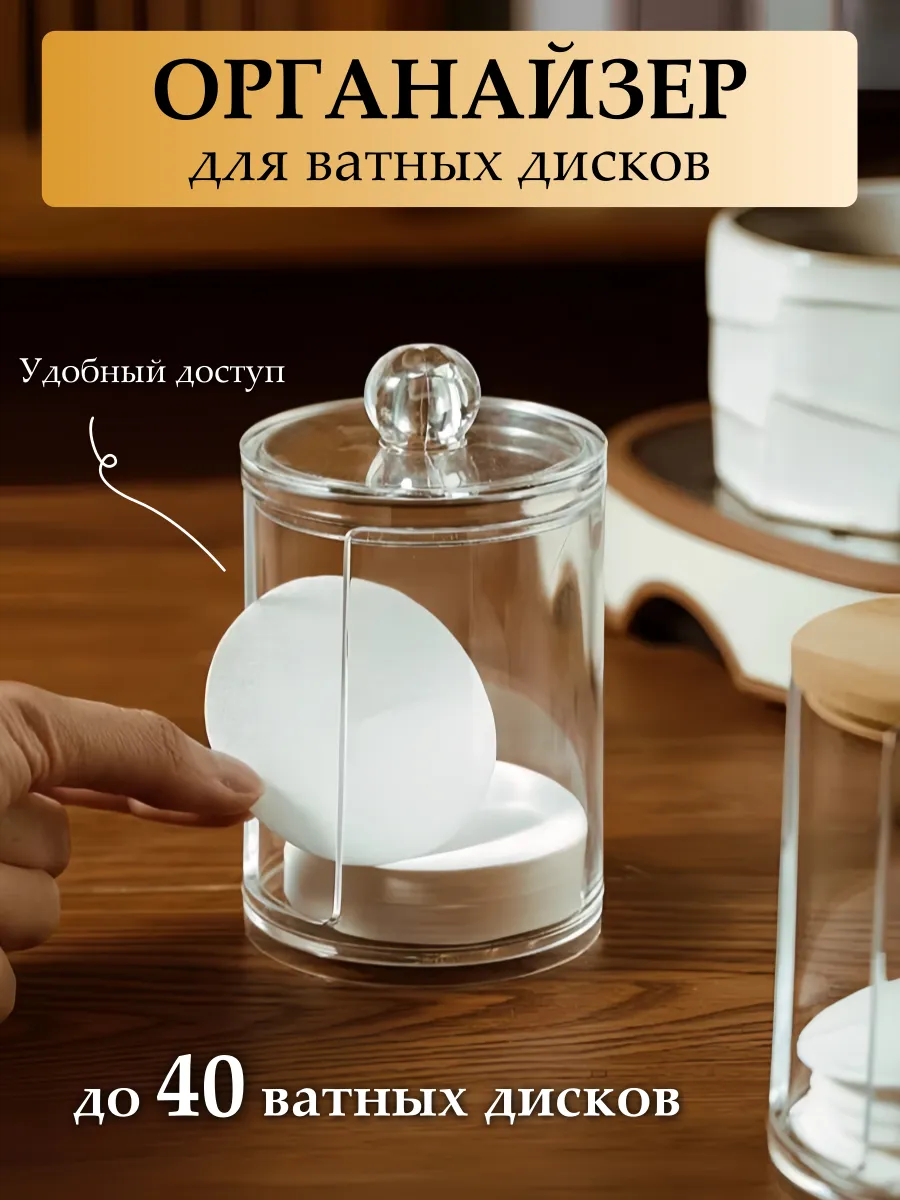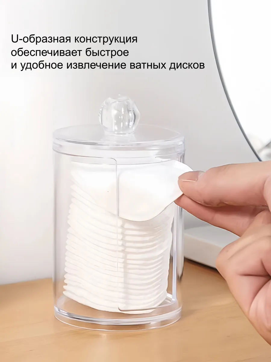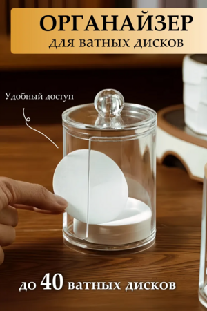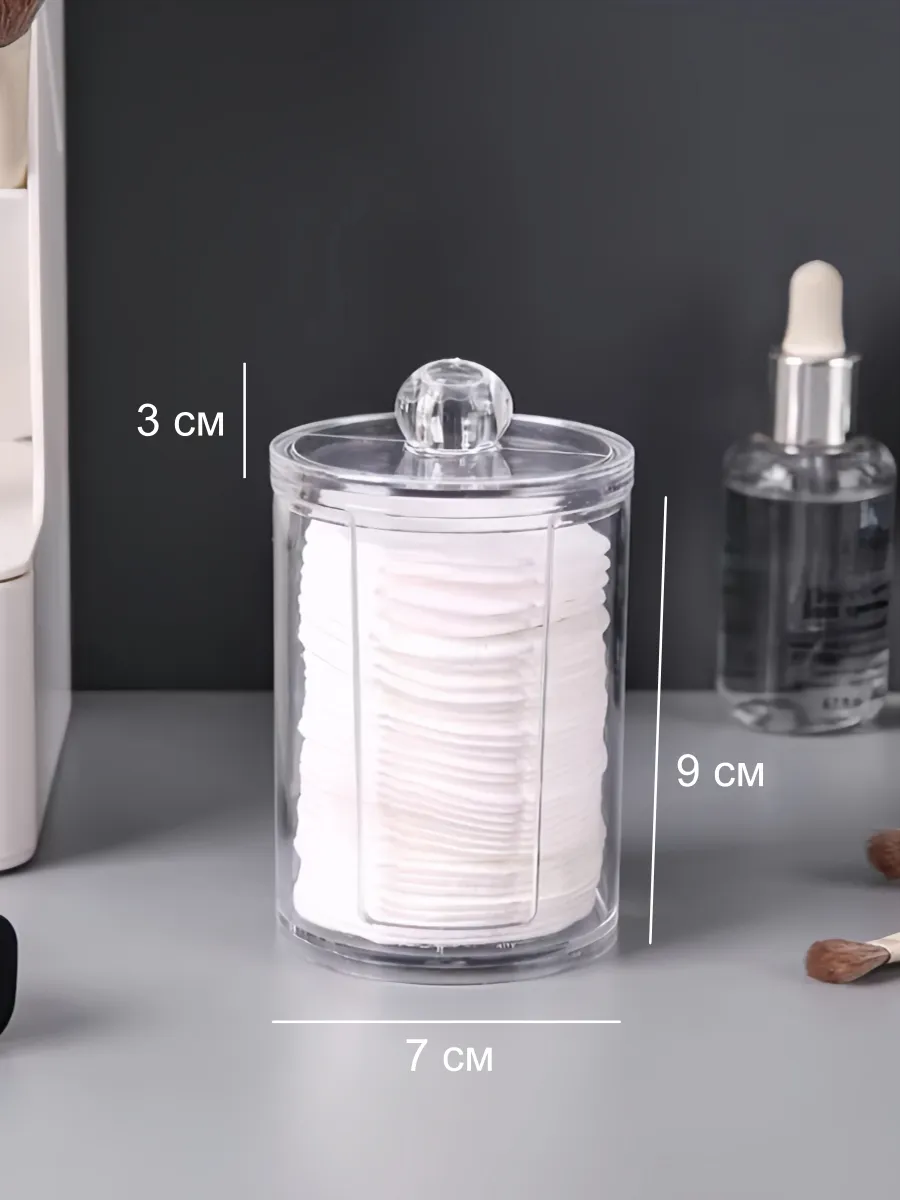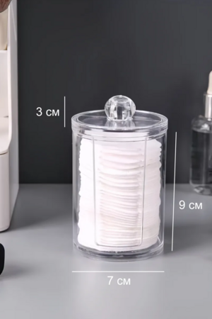 Органайзер для ватных дисков - практичный и удобный контейнер, который поможет организовать косметичку и ванную комнату. Этот пластиковый контейнер для дисков также может использоваться для хранения и других вещей, таких как ватные диски, резинки для волос и многое другое. Накопитель имеет компактный размер и удобную форму, которая позволяет разместить его на любой поверхности в душевой или ванной комнате, на туалетном столике в спальне или прихожей. Такой пластиковый прозрачный органайзер с крышкой - незаменимая вещь в вашем доме или квартире. Имеет простой, но стильный дизайн, который позволяет ему легко сочетаться с любым интерьером. Такая емкость также может использоваться как подставка для ватных дисков и спонжей, обеспечивая легкий доступ к ним. Диспенсер держатель для ватных дисков в форме стакана с прорезью сбоку позволяет легко и быстро извлекать необходимое количество дисков из банки. Это особенно удобно, когда нужно быстро удалить макияж с лица. Универсальный круглый бокс для расходников выполнен из высококачественного прочного и легкого пластика. Защитит косметические принадлежности от влаги и пыли. Станет отличным подарком для женщин, которые уделяют большое внимание своему внешнему виду и заботятся о своей косметике.