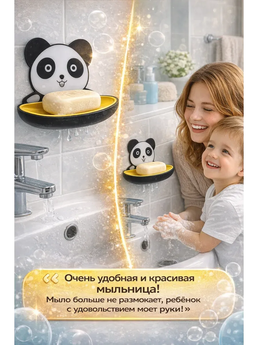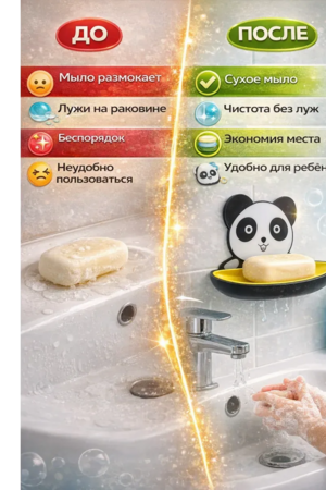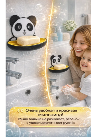 Оригинальная мыльница для ванной в виде милой панды — это практичное и стильное решение для хранения мыла. Настенная конструкция с надежной фиксацией помогает поддерживать чистоту и порядок возле раковины или в душевой зоне. Эта мыльница на присоске легко крепится к гладкой поверхности без сверления и инструментов. Благодаря специальным отверстиям в основании вода свободно стекает, а мыло остаётся сухим и не размокает. Настенная мыльница экономит место и предотвращает образование луж вокруг раковины. Подходит для кускового мыла стандартного размера. Корпус выполнен из прочного пластика, устойчивого к влаге и ежедневному использованию. Детская мыльница с присоской особенно понравится ребёнку — яркий дизайн в виде панды делает процесс мытья рук более интересным. Отличный вариант для дома, дачи или съёмной квартиры.