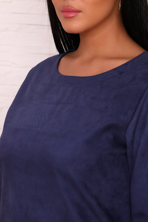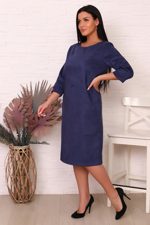 Платье прямого силуэта из замшевой ткани с рукавом ниже локтя. Горловина и низ платья подшиты плоскошовным швом.