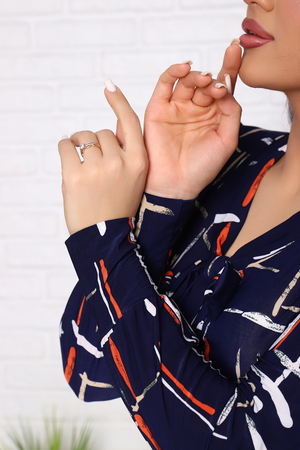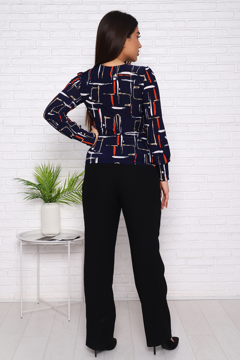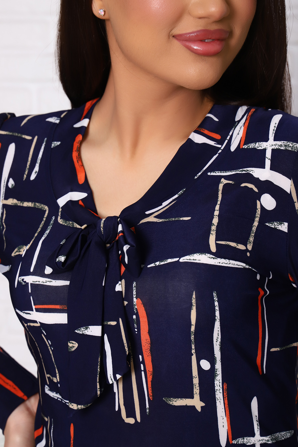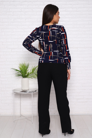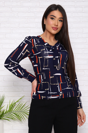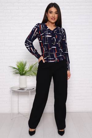 Женский джемпер с оригинальным вырезом, переходящим в завязки, приталенного силуэта. Рукав длинный с плотным манжетом.