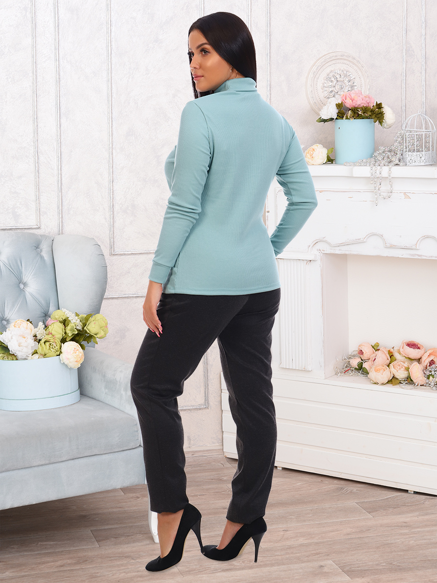 Блузка (водолазка) женская с втачным длинным рукавом на манжете и высоким воротником — стойка. Материал: ангора.