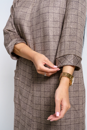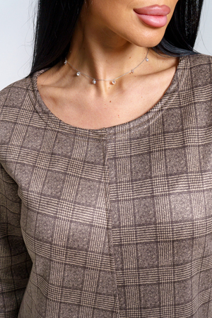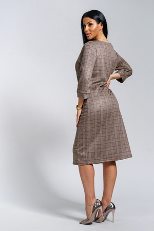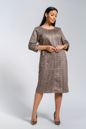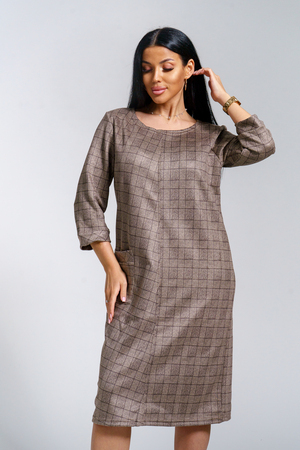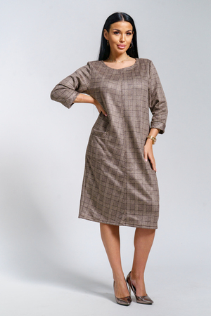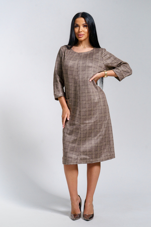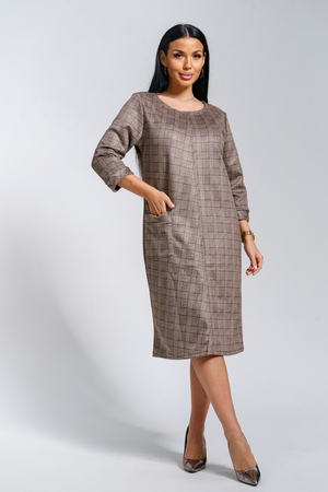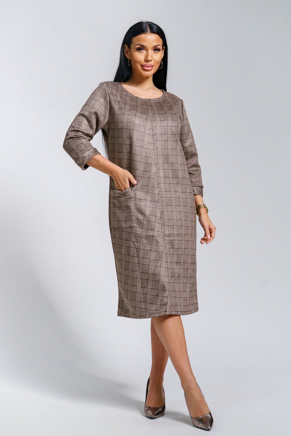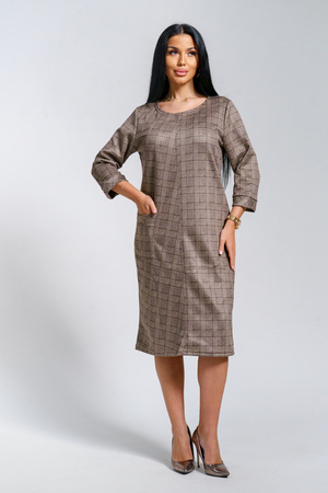 Платье женское офисное Состав: 30% микрофибра, 65% полиэстер, 5% лайкра Изысканное женское платье свободного покроя с рукавом средней длины, с оригинальным сочетанием направленности рисунка.
