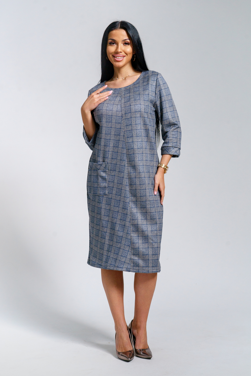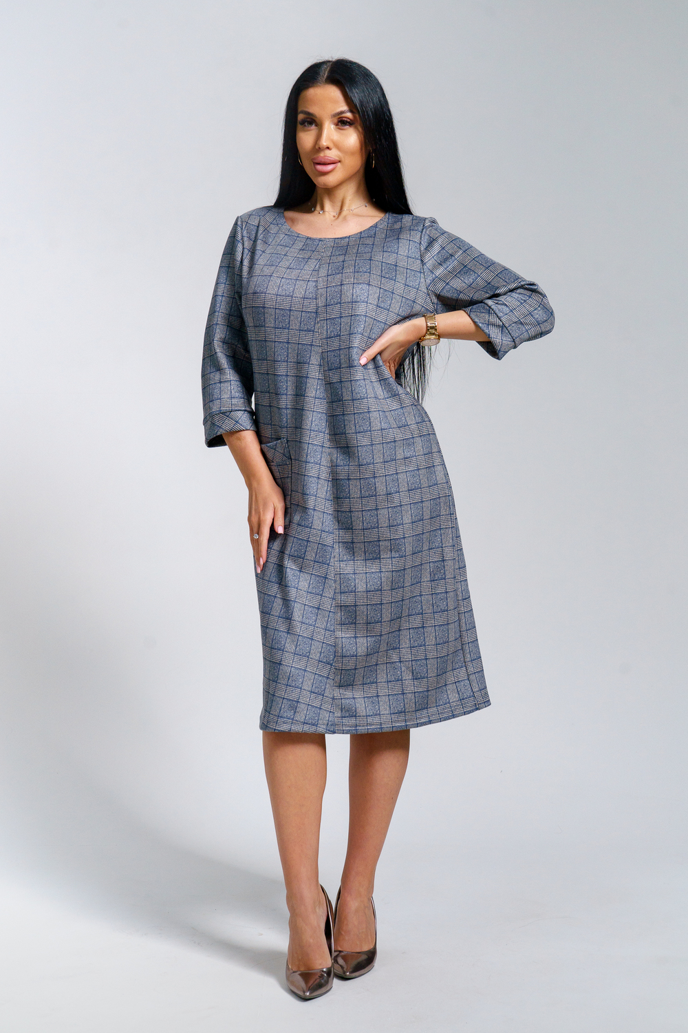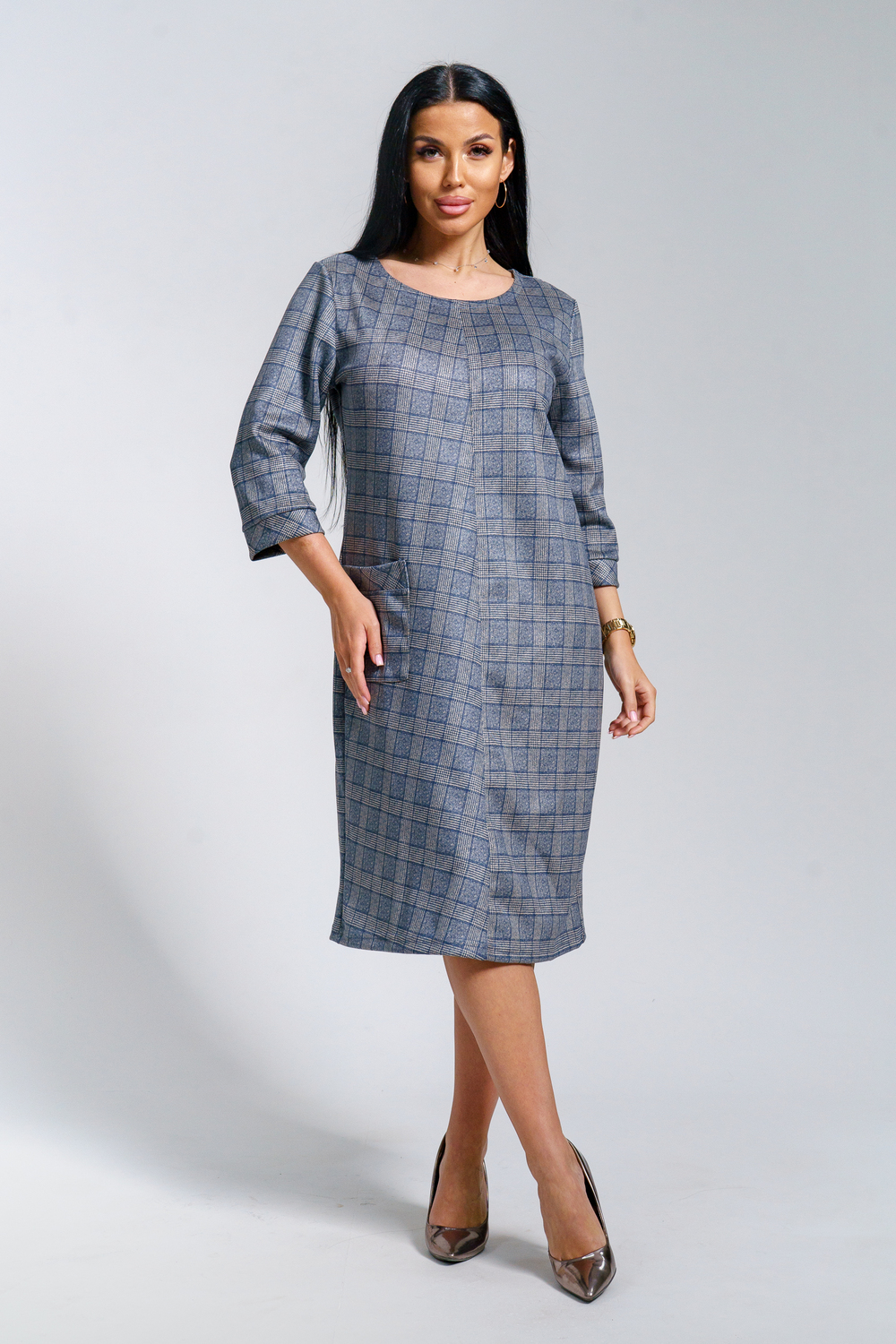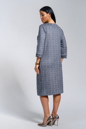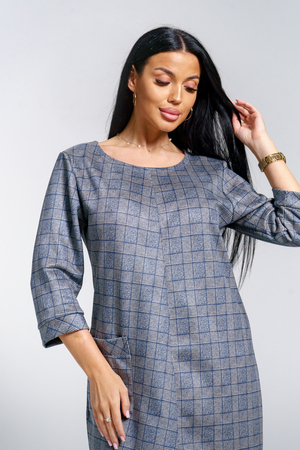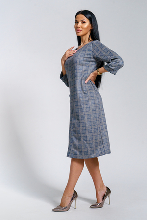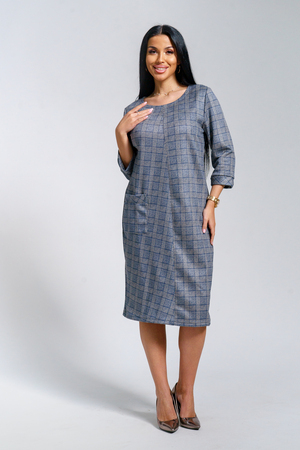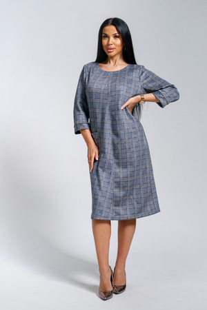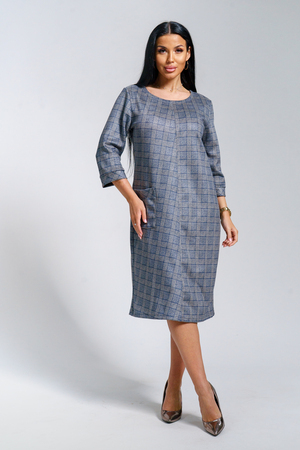 Платье женское офисное Состав: 30% микрофибра, 65% полиэстер, 5% лайкра Изысканное женское платье свободного покроя с рукавом средней длины, с оригинальным сочетанием направленности рисунка.