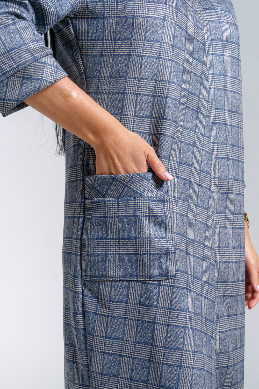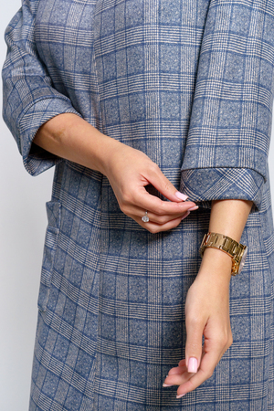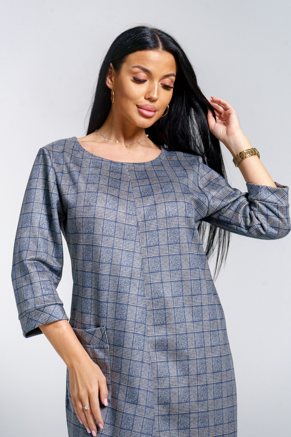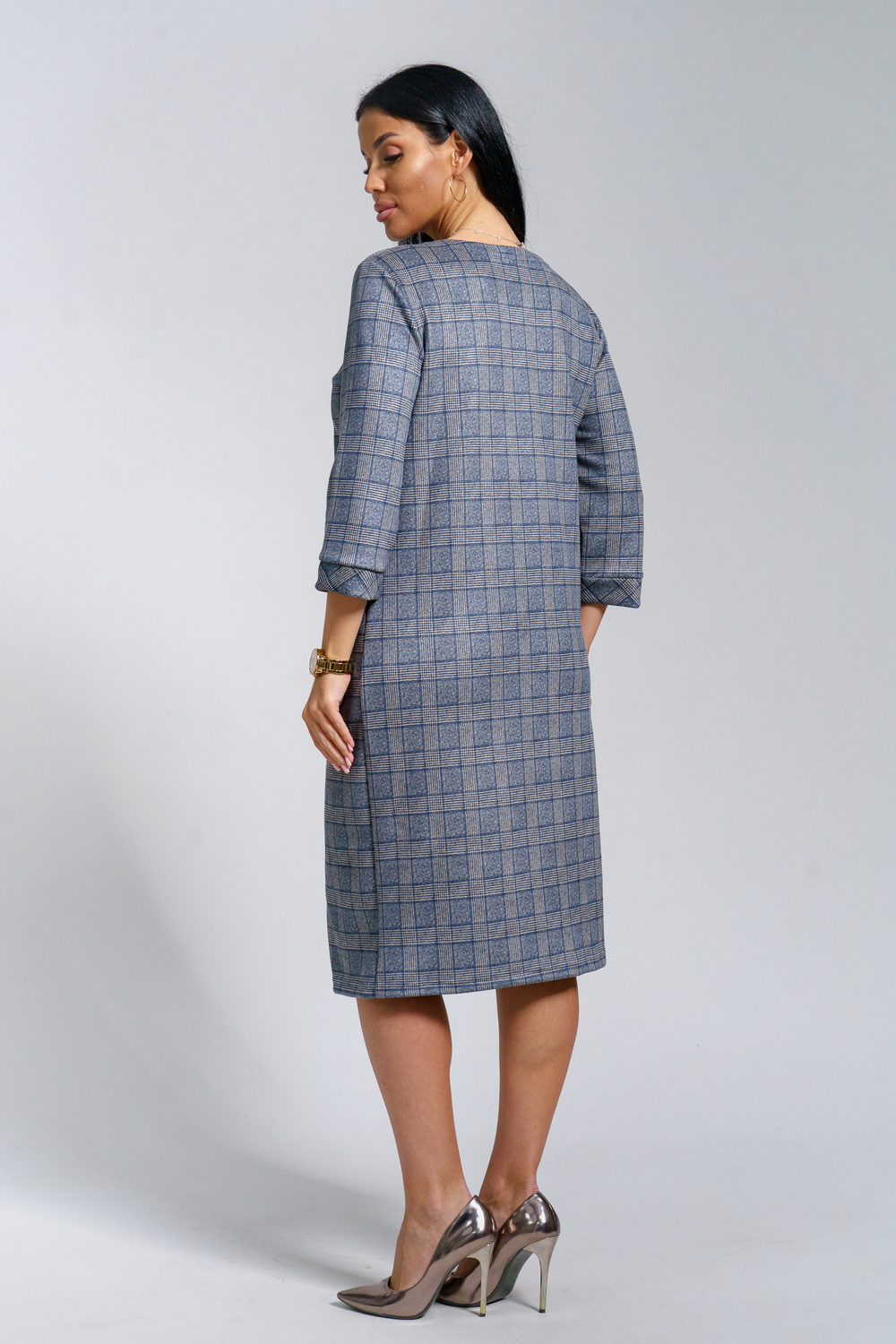 Платье женское офисное Состав: 30% микрофибра, 65% полиэстер, 5% лайкра Изысканное женское платье свободного покроя с рукавом средней длины, с оригинальным сочетанием направленности рисунка.