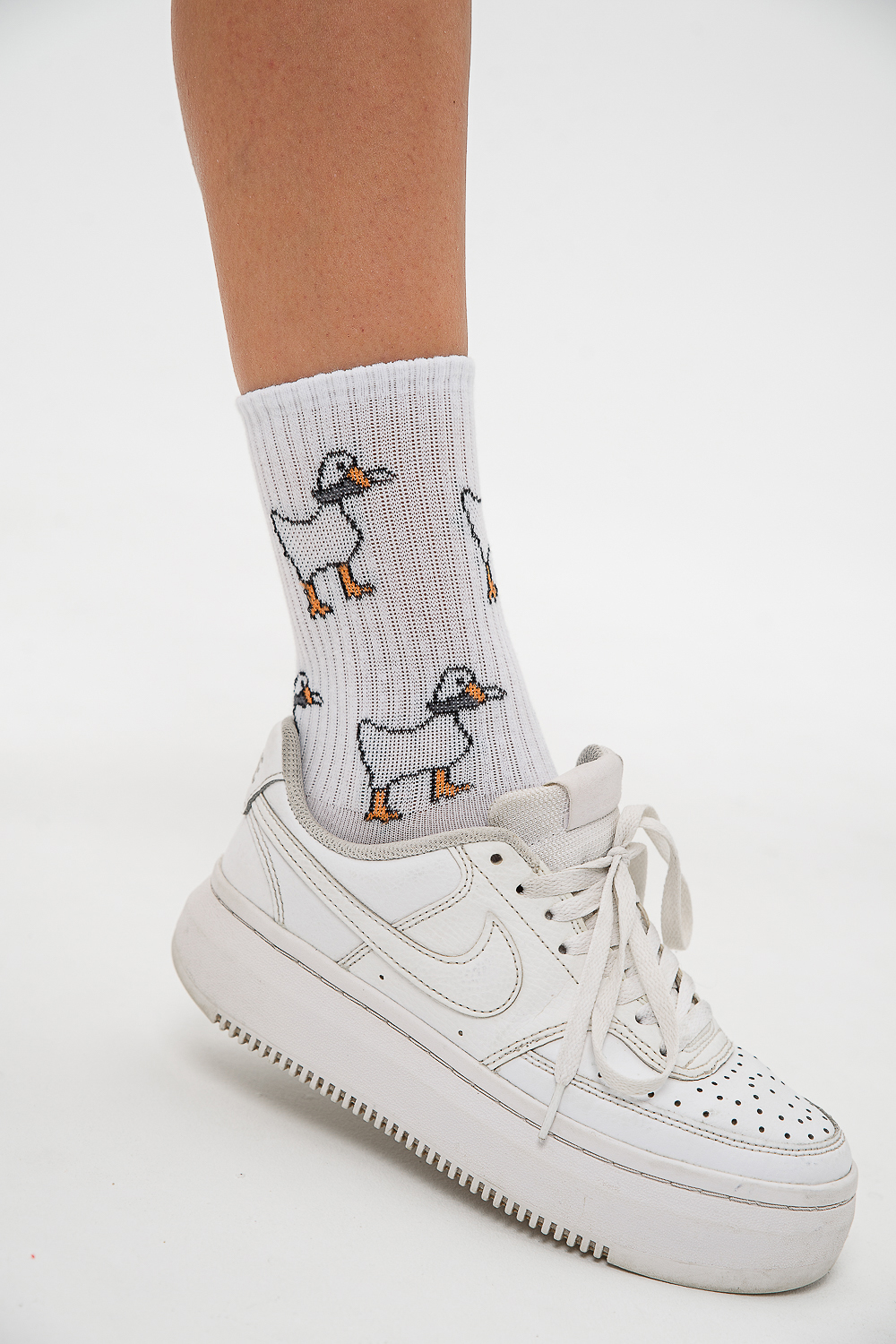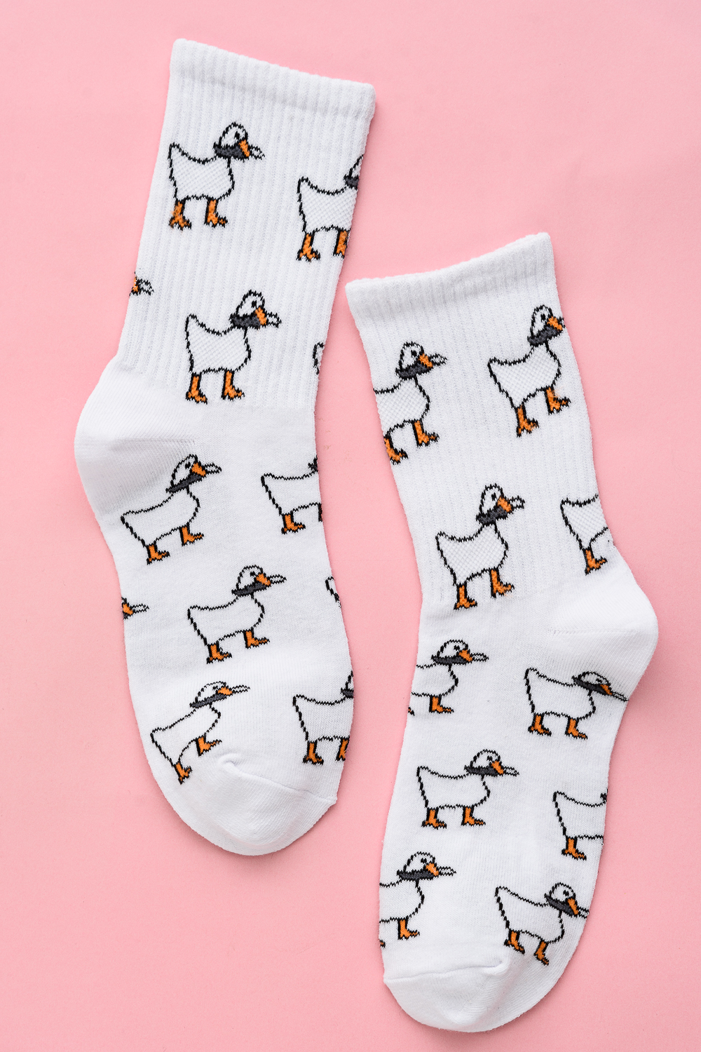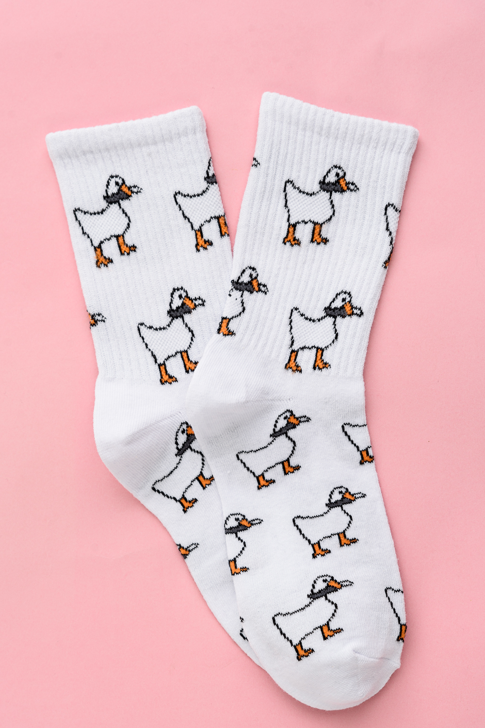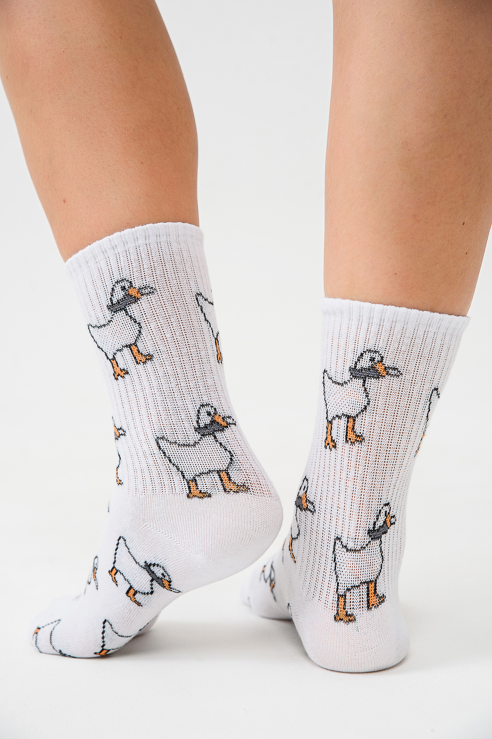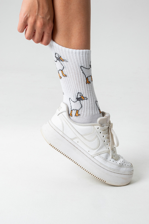 Трендовые носки для женщин. Широкая резинка, по всему носку изображение гусей. В наборе 2 пары.
