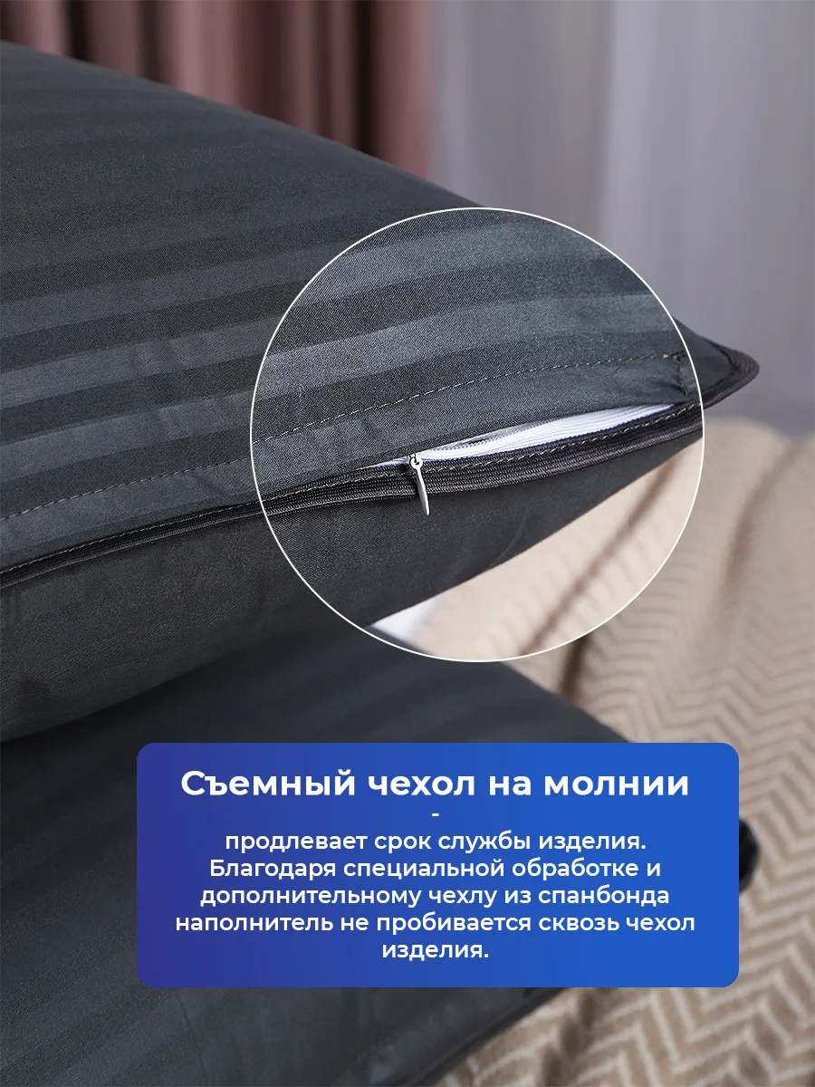 Чехол изготовлен из прочной ткани с гладкой полуматовой поверхностью. Материал приятен на ощупь, отличается высокой износостойкостью и устойчивостью к истиранию. Плотная структура ткани надежно удерживает наполнитель и помогает изделию долго сохранять аккуратный внешний вид. Фирменная тесьма по краю служит декоративным элементом и дополнительно укрепляет форму. Съемный чехол на молнии упрощает уход и помогает поддерживать гигиену постельных принадлежностей. Внутренний слой из спанбонда предотвращает выход волокон наружу и защищает наполнитель от смещения. Благодаря хорошей воздухопроницаемости изделие поддерживает комфортную температуру поверхности во время отдыха. Это особенно важно в теплое время года, когда требуется хорошая вентиляция и ощущение свежести.