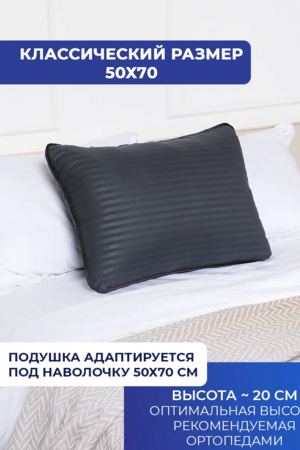 Подушка 50х70 для сна — удобная и практичная модель для спальни, которая помогает создать комфортные условия для полноценного отдыха. Благодаря анатомической форме изделие поддерживает голову и шейный отдел в правильном положении, снижая нагрузку на мышцы и способствуя расслаблению во время ночного отдыха. Модель подходит для сна на спине, боку и животе.