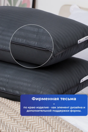 Подушка 50х70 для сна PM, сатин, полиэфирное волокно цвет графит