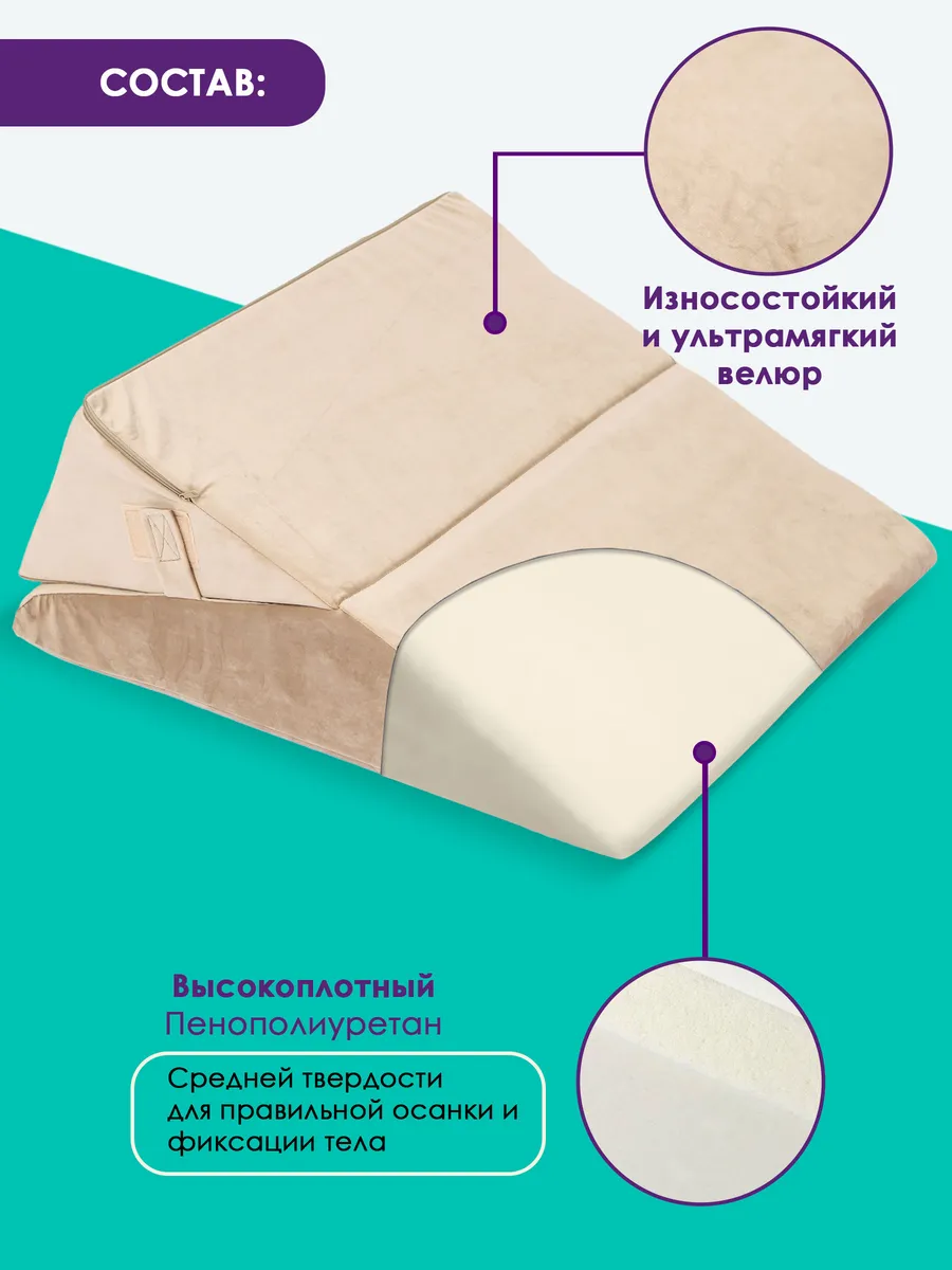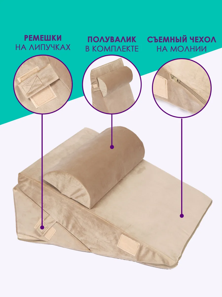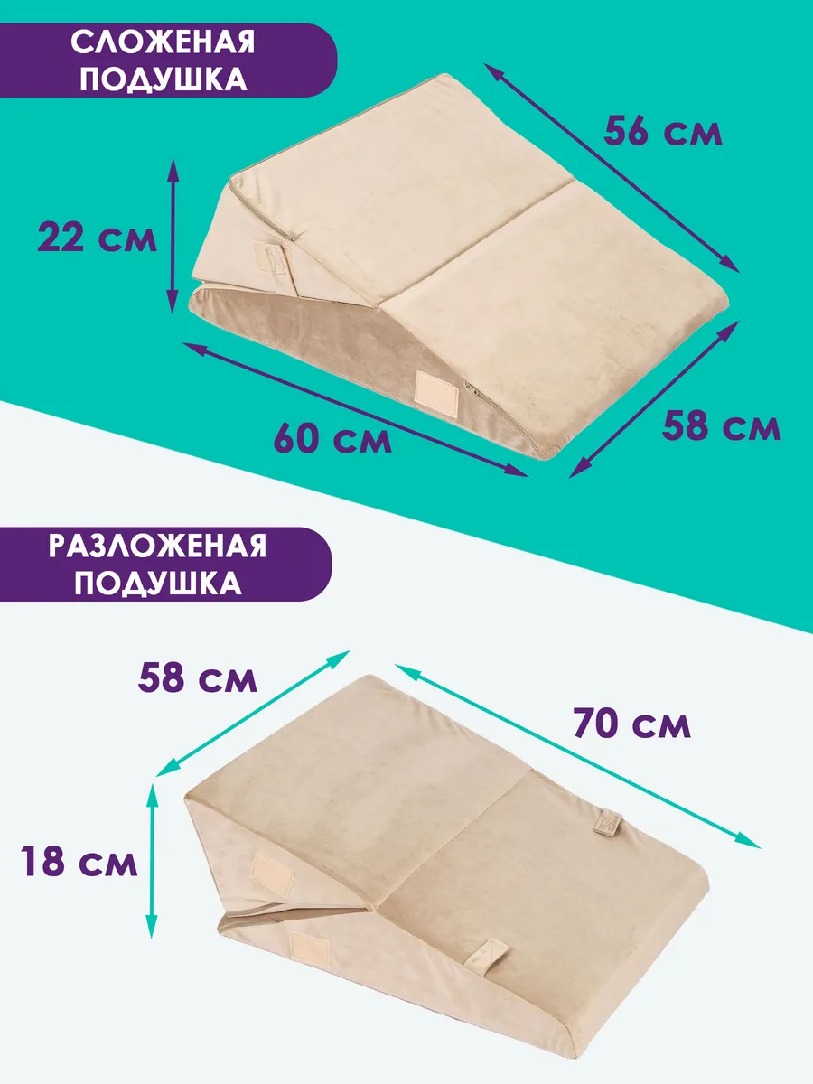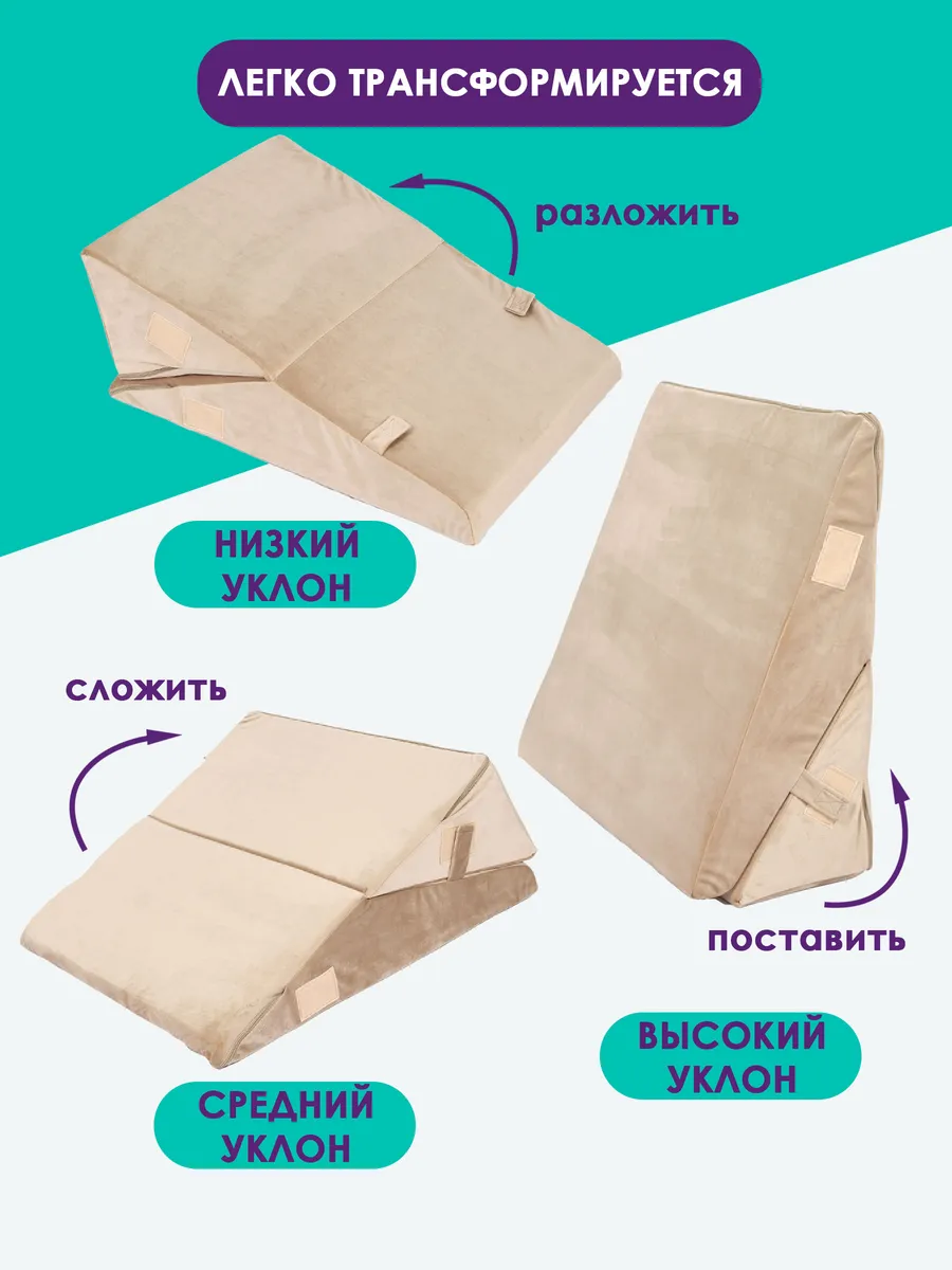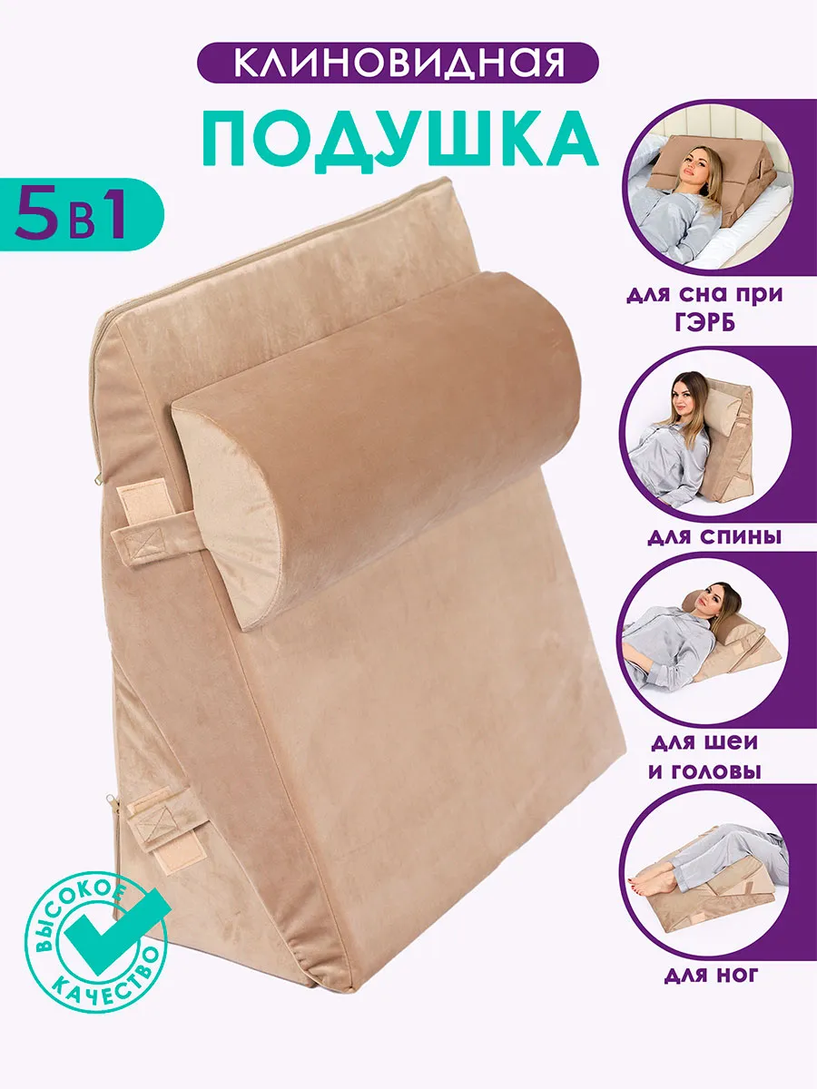 Подушка Клиновидная при гэрб для сидения и сна PTK, велюр, поролон, трансформер