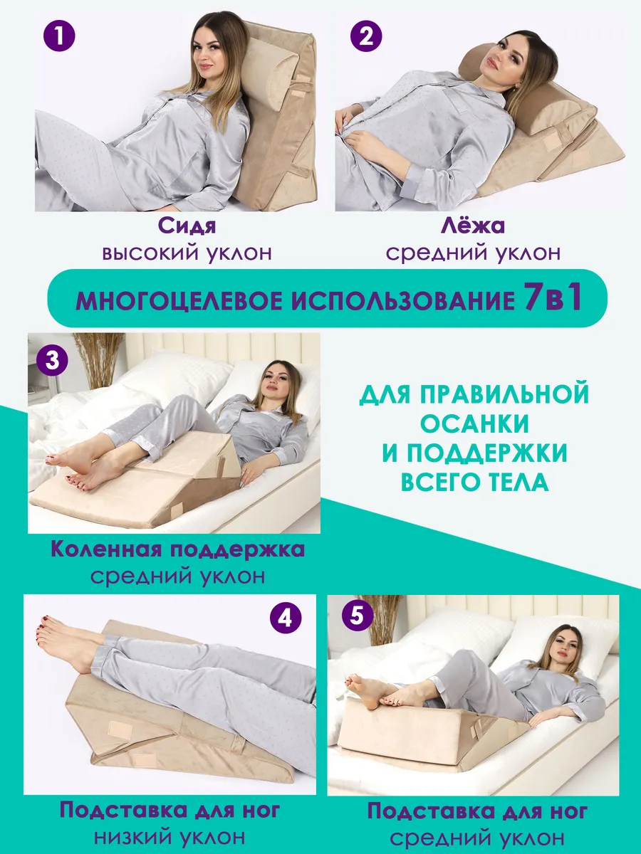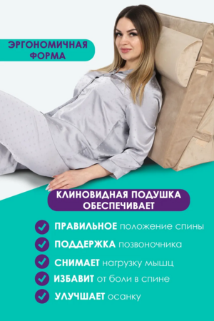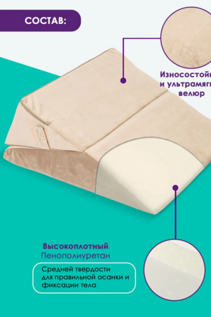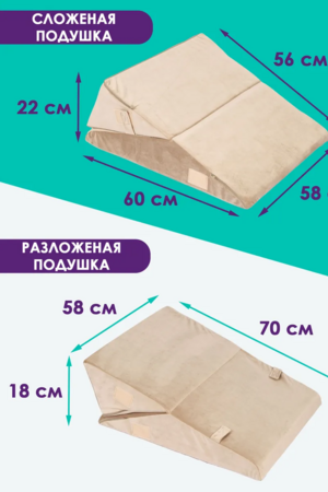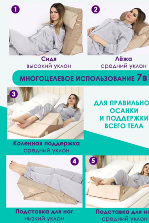 Изделие упругое, держит форму. Клиновидная подушка подходит для снятия напряжения и усталости ваших ног. Поможет вашим ногам принять нужное положение во время дневного сна. Прекрасно подойдет как для кресла, так и для дивана или кровати.