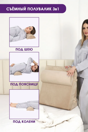 Также может использоваться для сна в приподнятом положении, что делает отдых более комфортным при склонности к рефлюксу и изжоге.