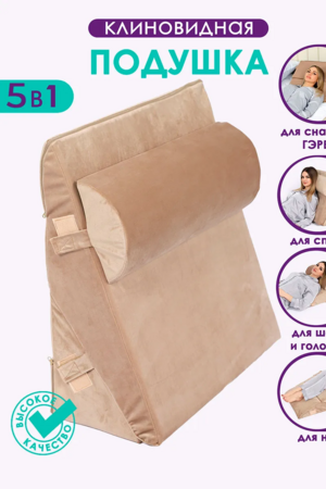 Клиновидная ортопедическая подушка с валиком — удобное и эргономичное решение для сна, отдыха и работы. Треугольная форма обеспечивает комфортную поддержку спины, шеи и поясницы, помогая занять правильное положение на кровати, диване или кресле.