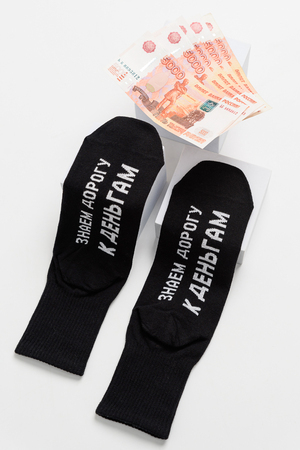 Комплект мужских носков 3 пары. Широкая резинка по всей верхней части носка. На стопе надпись "Знаем дорогу к деньгам".