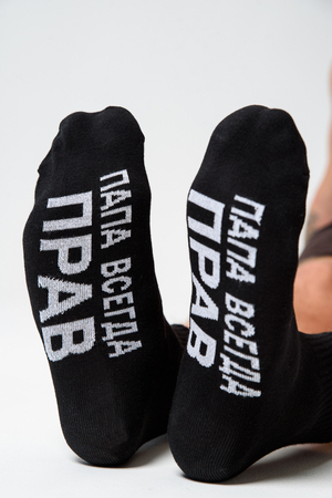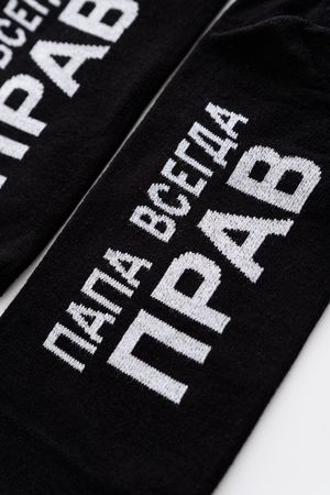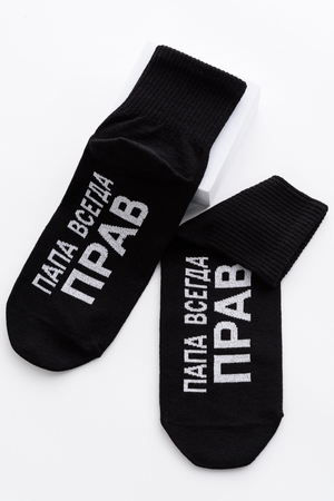 Мужские носки комплект 2 пары. Широкая резинка по всей верхней части носка. Надпись на стопе "Папа всегда прав"