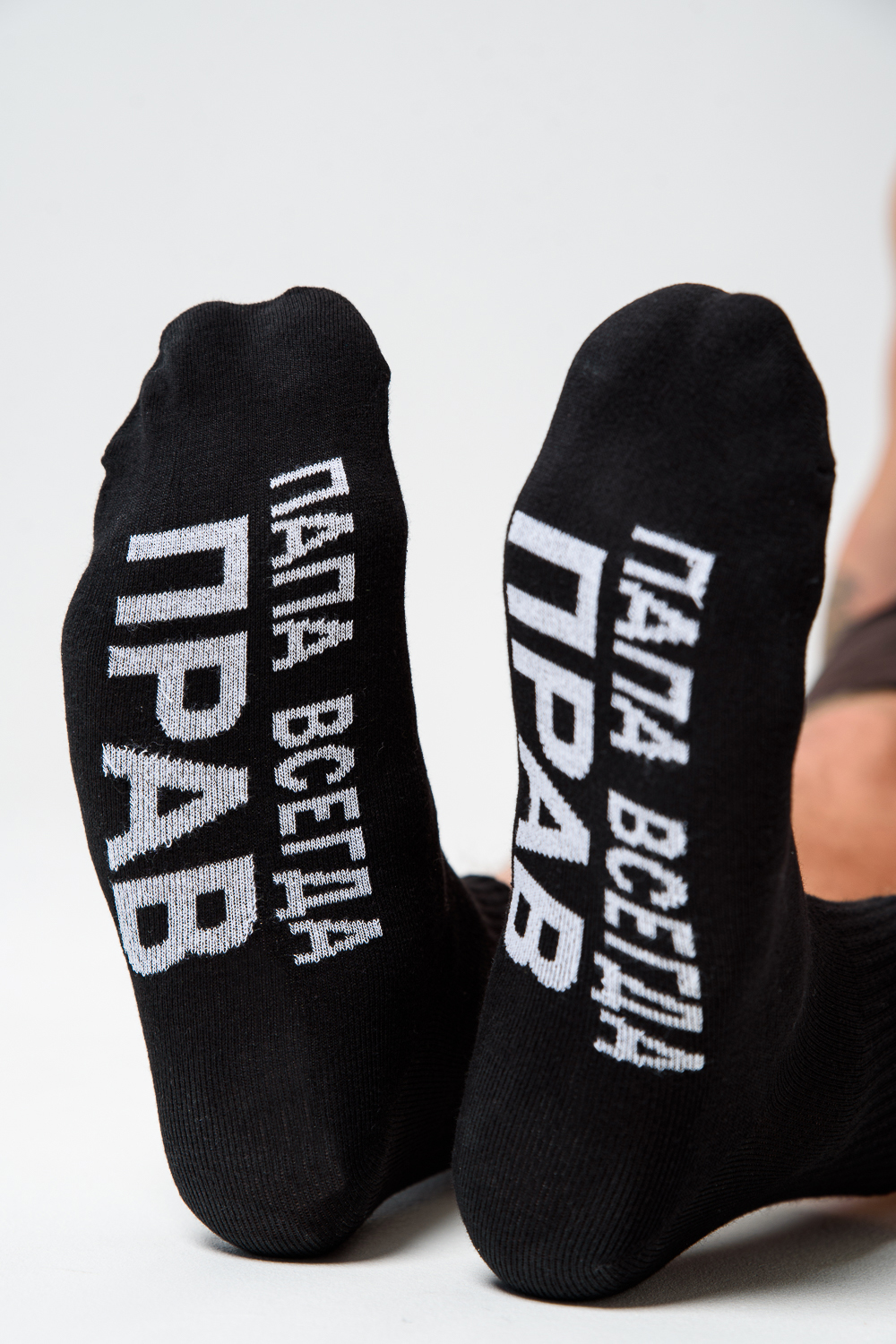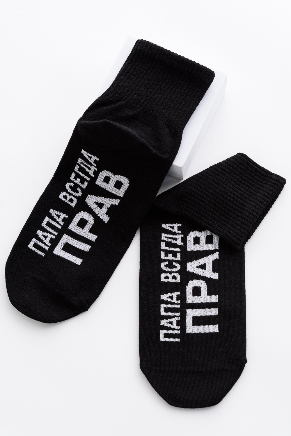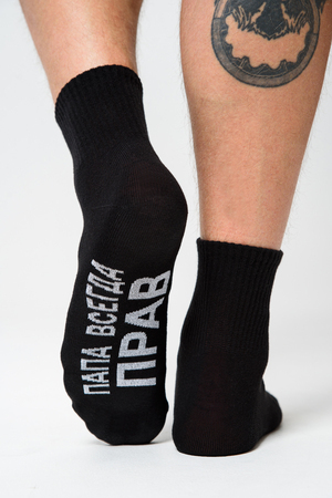 Мужские носки комплект 3 пары. Широкая резинка по всей верхней части носка. Надпись на стопе "Папа всегда прав"