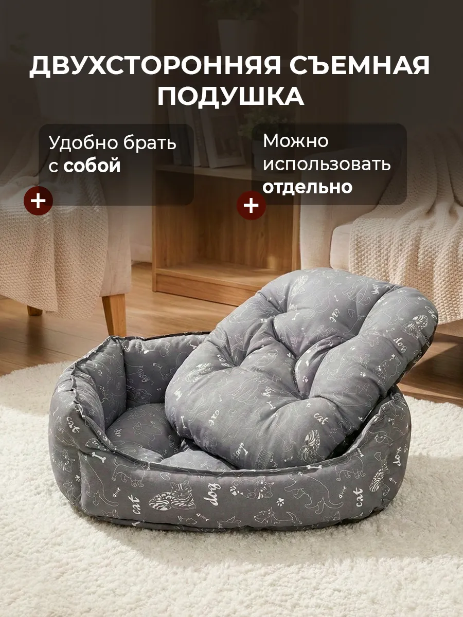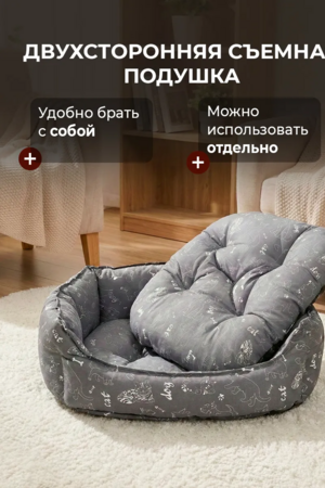 Внутри лежака расположена мягкая съёмная подушка. Подушку можно легко достать и почистить, поэтому лежанка для кошки или собаки проста в уходе и долго сохраняет аккуратный внешний вид.