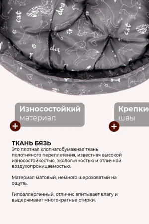 Лежанка для животных легко стирается в стиральной машине. Прочные ткани сохраняют форму и внешний вид даже после многократной стирки.