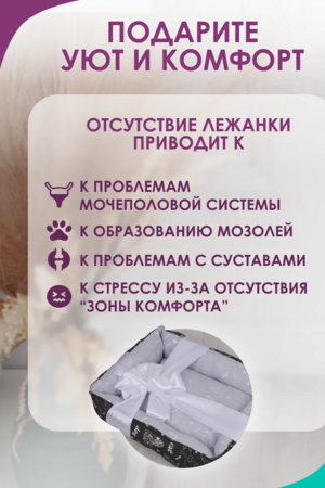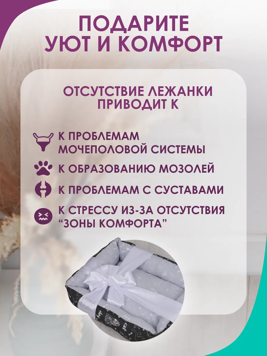 Легко очищается от загрязнений, что делает уход за лежаком простым и быстрым. Дизайн идеально впишется как в современный интерьер квартиры, так и уютного загородного дома. Бортики защищают место отдыха от сквозняков и помогают сохранить тепло внутри пространства. Подойдет как кошачий уголок или спальня для игривых котов любых возрастов. Приятный лежак украсит любую комнату, добавляя стильный акцент вашему дому. Конструкция выдерживает интенсивные игры маленьких питомцев без утраты формы. Лежак для кошек или диван для собак может стать отличным подарком любителям животных – так как товар совмещает комфорт и практичность!