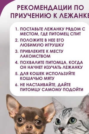 Лежанка имеет компактный дизайн с функцией складного матраса, что облегчает транспортировку. Например, вы легко можете взять ее с собой в машину во время поездок за город или к друзьям. Она легко размещается на полу, можете разместить на ковер или на кровати. Лежанка для кота станет любимым местом отдыха не только дома, но и на прогулках. Благодаря мягкому коврику внутри питомец сможет расслабиться после активных игр. Она создает ощущение тепла и уюта. Это больше чем просто кроватка – это настоящий мини-дом для вашего пушистого друга!