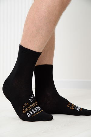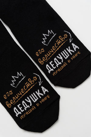 Комплект мужских носков 2 пары. На основной части носка надпись "Его величество дедушка, лучший в мире"