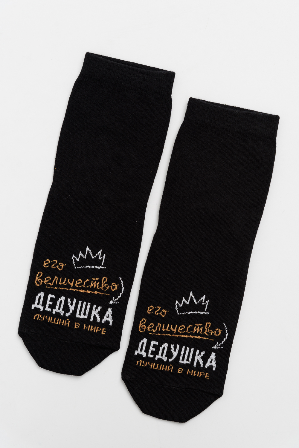 Комплект мужских носков 3 пары. На основной части носка надпись "Его величество дедушка, лучший в мире"