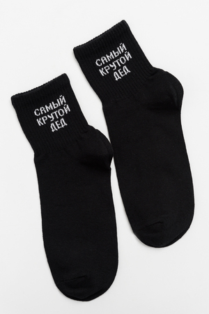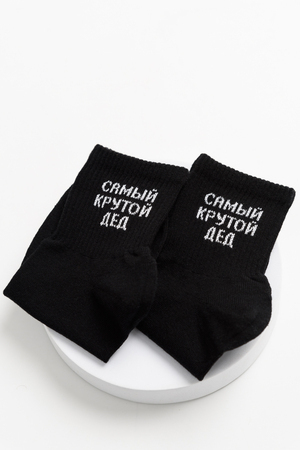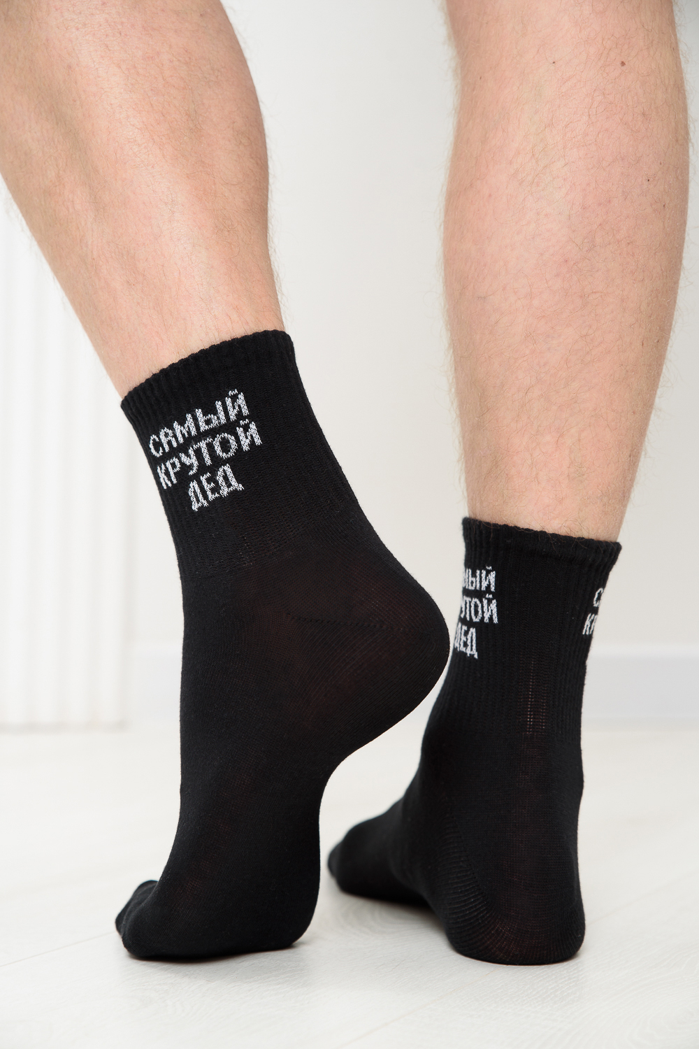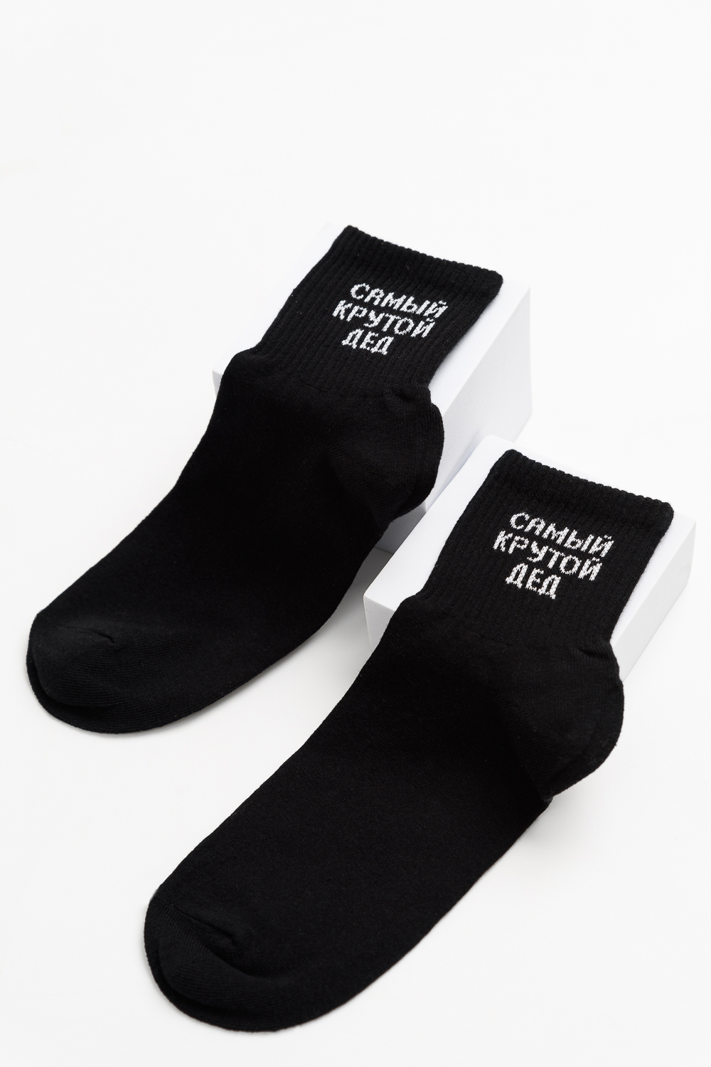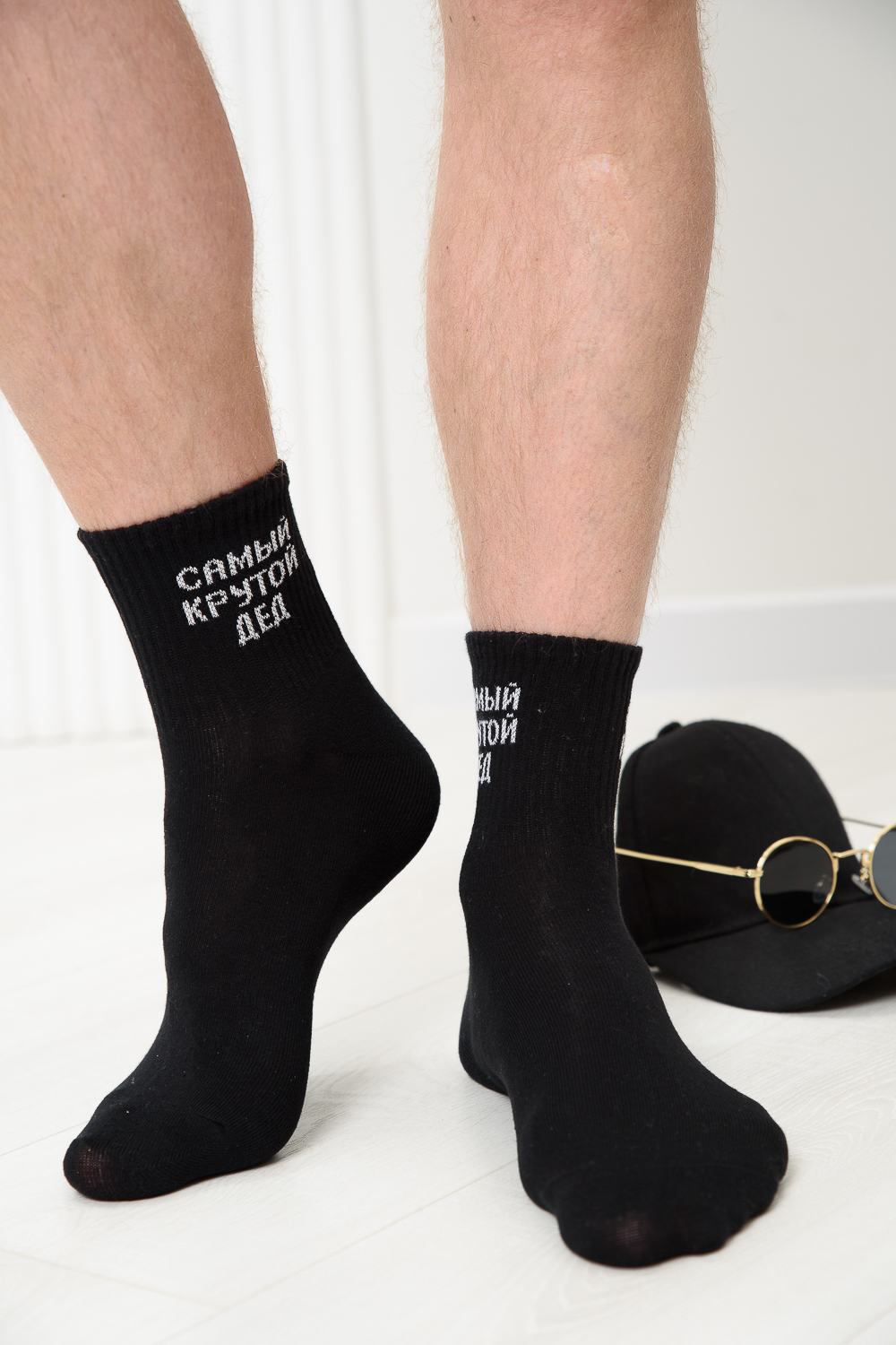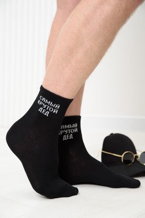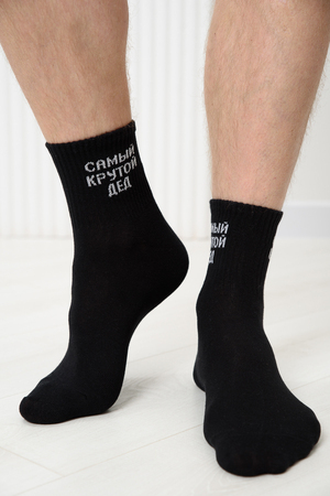 Комплект мужских носков 3 пары. Широкая резинка по всей верхней части носка. На резинки надпись "самый крутой дед"