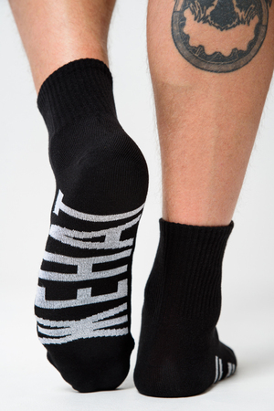Мужские носки, комплект 3 пары. Большая надпись на стопе "ЖЕНАТ". Пятка и носок другого цвета.