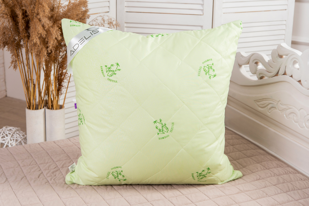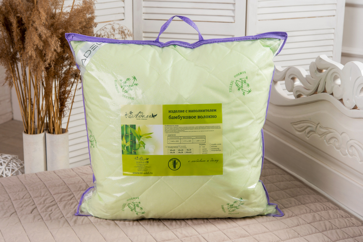 Подушка "Бамбук" тик на молнии лебпух+бамбук, стег, лента, сумка(Н)