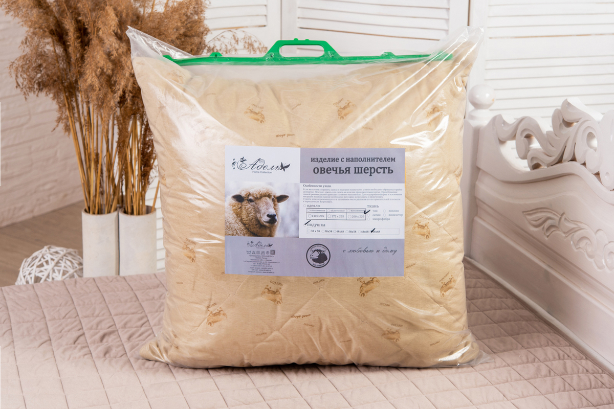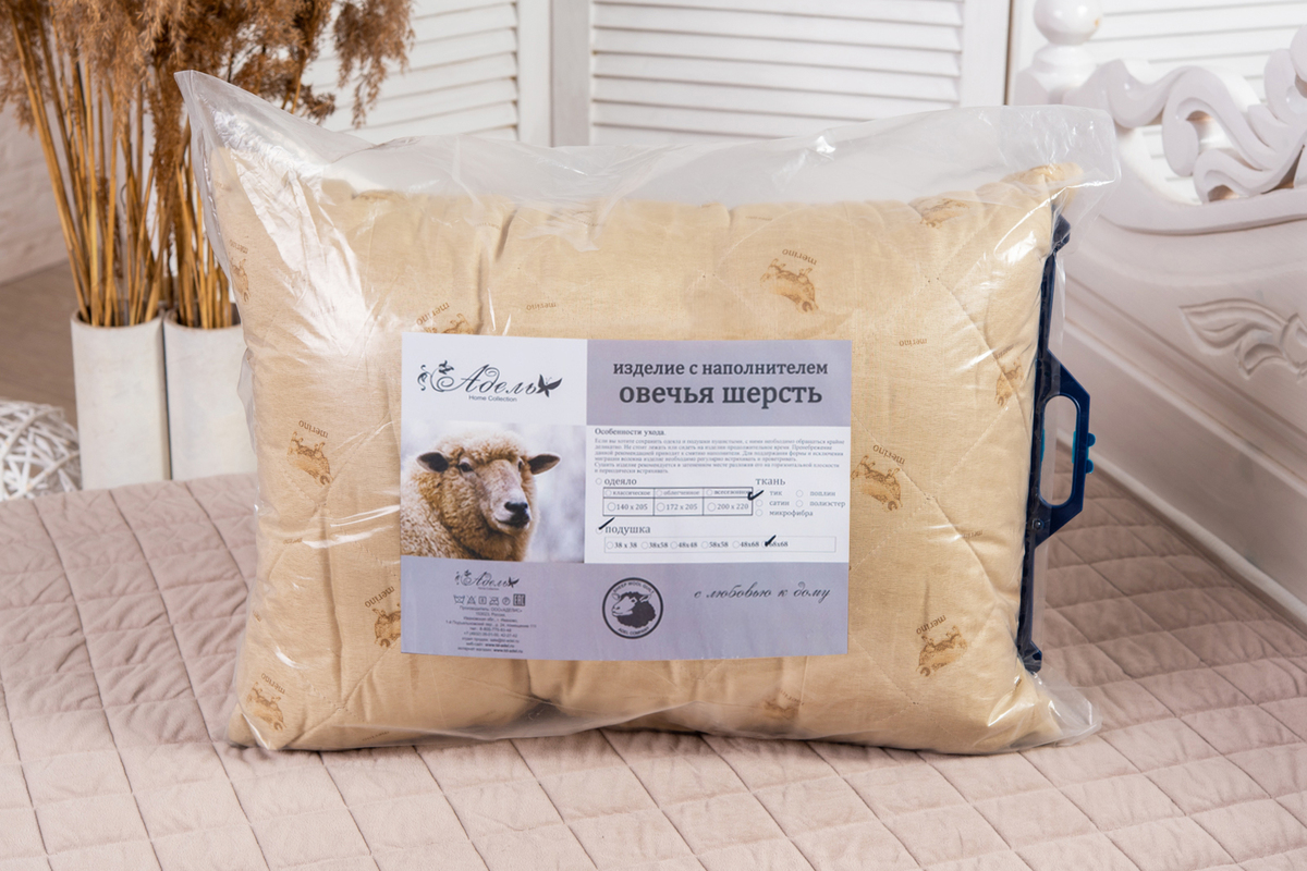 Овечья шерсть – экологически чистый наполнитель, который славится своей чудесной способностью поддерживать оптимальный температурный режим. Этот материал воздухопроницаем и хорошо впитывает влагу. Одновременно он очень мягкий, легкий и хорошо восстанавливает свою форму. Поэтому отдых на подушках из овечьей шерсти отличается особым комфортом.