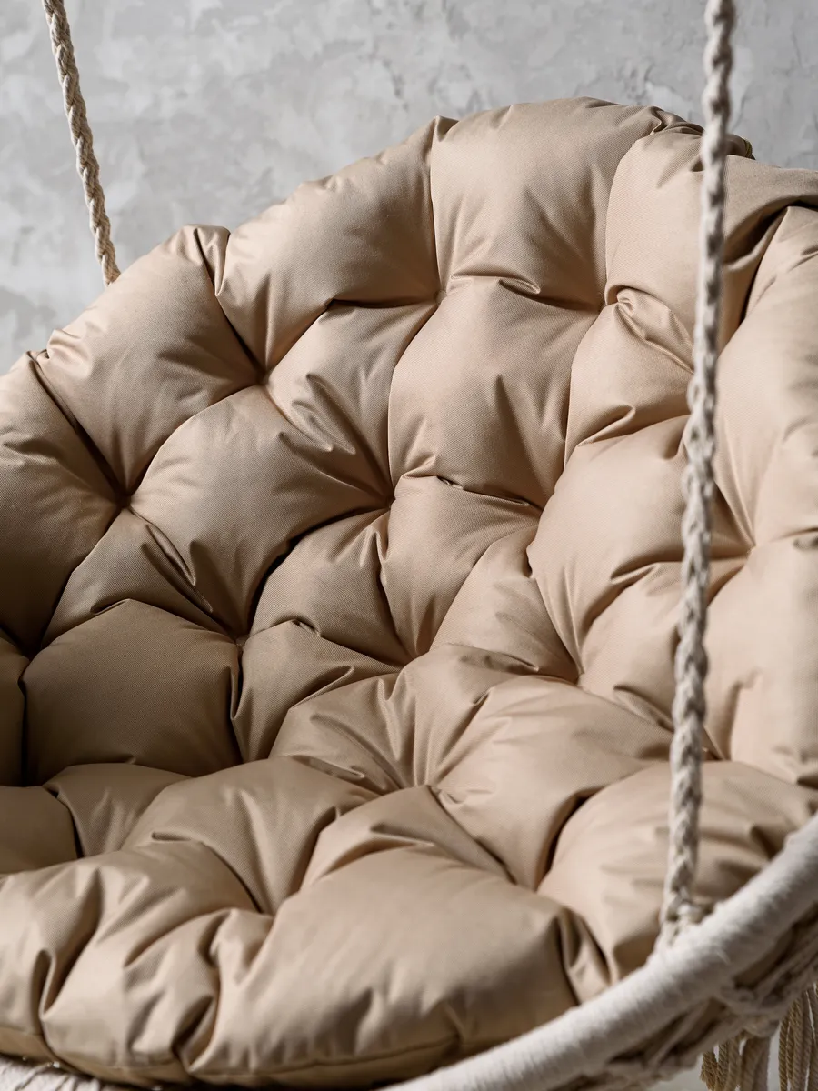 Внутренний наполнитель обеспечивает мягкость и поддержку. Благодаря этому сиденье становится более удобным, а отдых — приятным и расслабляющим. Подушка делает кресло-кокон, подвесные качели или гамак более комфортными для чтения, общения или спокойного отдыха.