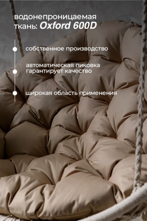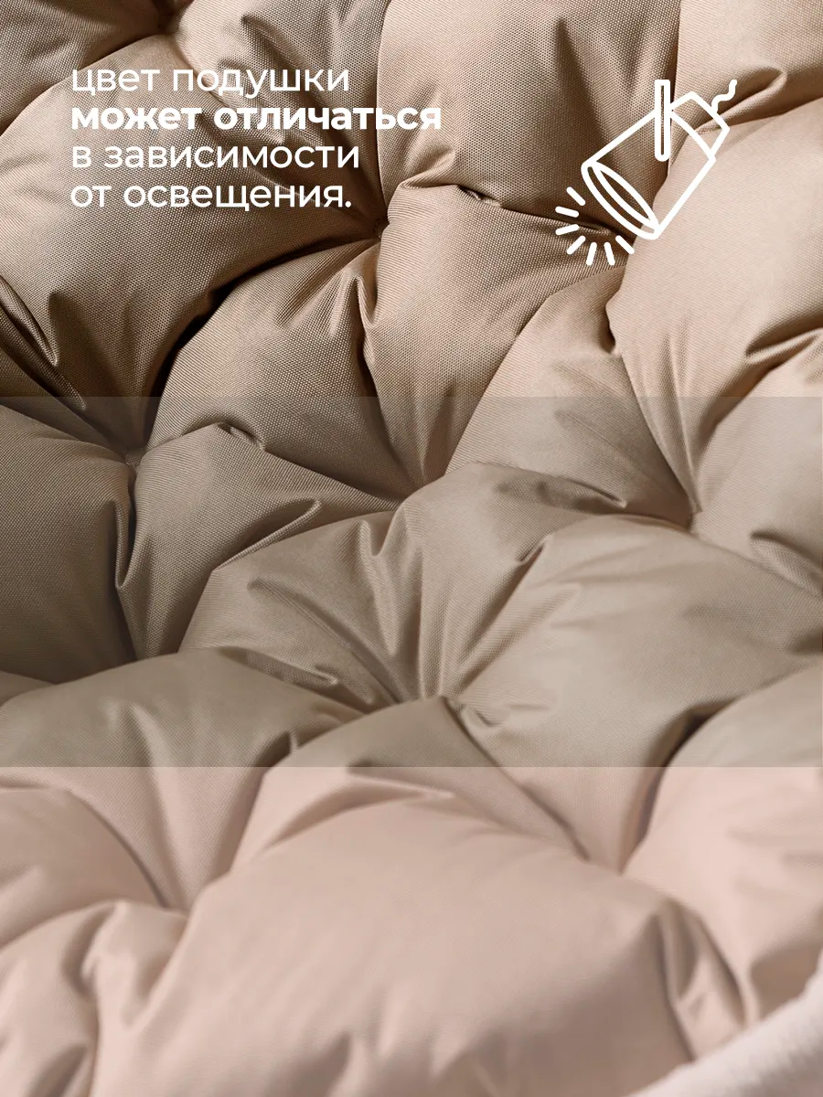 Благодаря универсальному размеру изделие подходит для большинства моделей кресел-коконов, гамаков, ротанговых сидений и качелей-гнёзд. Подушка удобно заполняет сиденье и обеспечивает приятную мягкость во время отдыха.