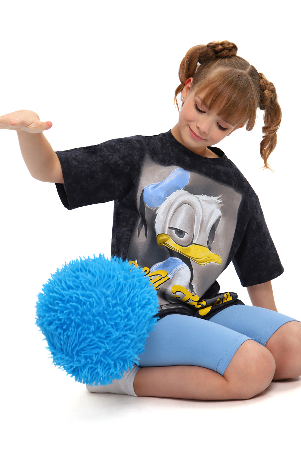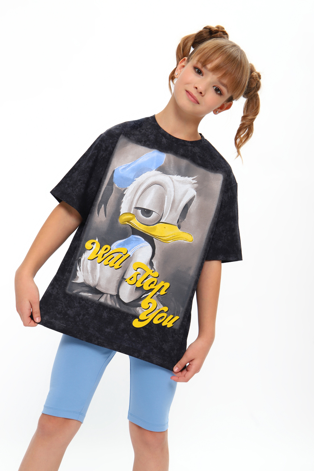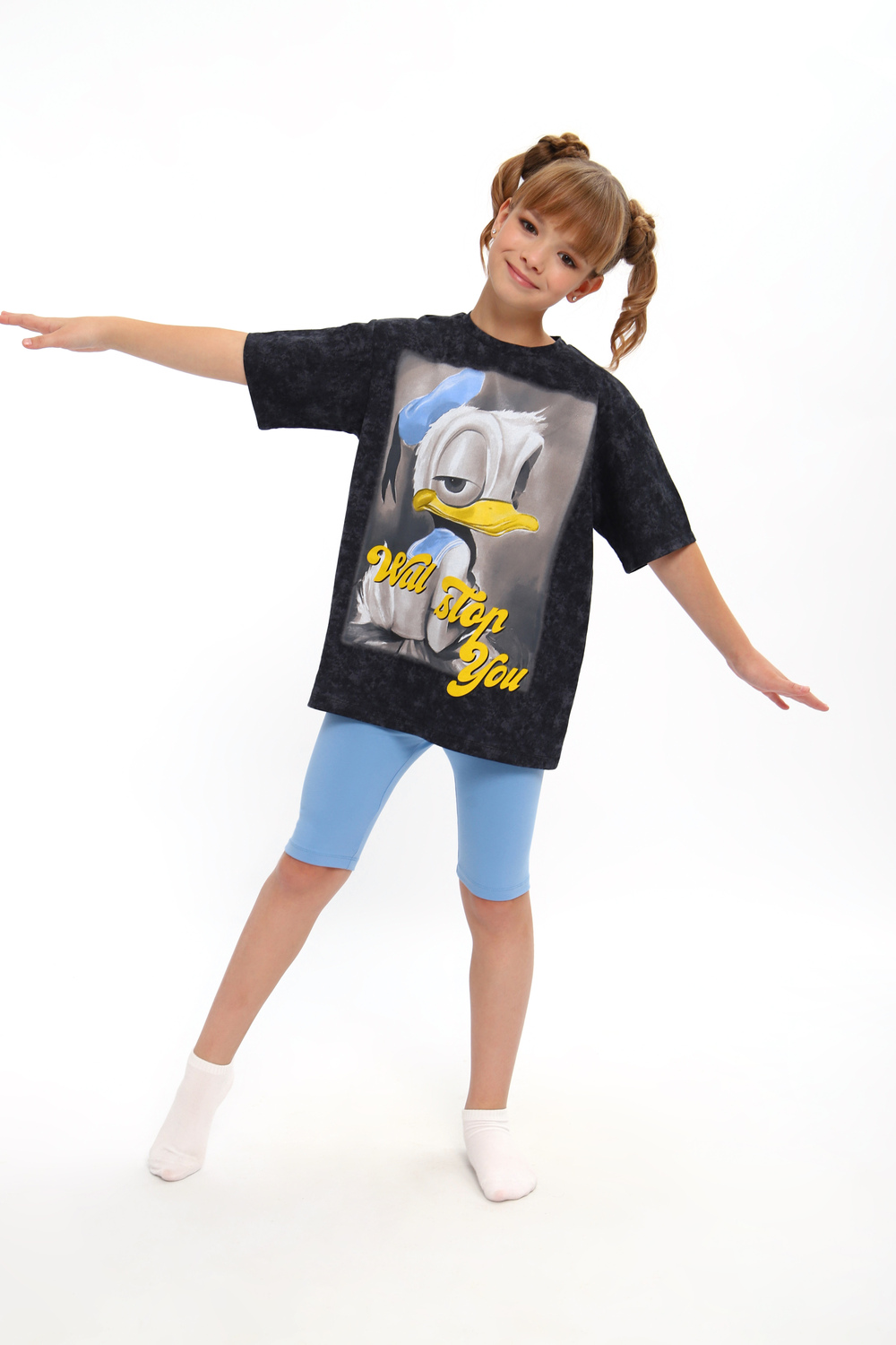 Домашний костюм для девочек подростков - это идеальный выбор для комфортного и стильного сна и отдыха дома и на улице. Набор из футболки с короткими рукавами и шорт велосипедок выполнен из мягкого, дышащего трикотажа из хлопка, который приятен к телу и не вызывает раздражений. Яркий принт с любимыми персонажами мультфильмов Диснея - радует глаз и поднимает настроение. Свободная футболка оверсайз с прямым покроем не сковывает движений. Детская пижама прекрасно подойдет для повседневного ношения ребенка, а также станет отличным подарком. Благодаря стильному дизайну и качественным материалам, этот домашний костюм станет любимой одеждой в дорогу в путешествие или лагерь