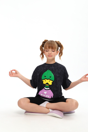 Домашний костюм для девочек подростков - это идеальный выбор для комфортного и стильного сна и отдыха дома и на улице. Набор из футболки с короткими рукавами и шорт велосипедок выполнен из мягкого, дышащего трикотажа из хлопка, который приятен к телу и не вызывает раздражений. Яркий принт с любимыми персонажами мультфильмов Диснея дарит отличное настроение и выделяет вас из толпы. Свободная футболка оверсайз с прямым покроем не сковывает движений. Детская пижама прекрасно подойдет для повседневного ношения ребенка, а также станет отличным подарком. Благодаря стильному дизайну и качественным материалам, этот домашний костюм станет любимой одеждой в дорогу в путешествие или лагерь