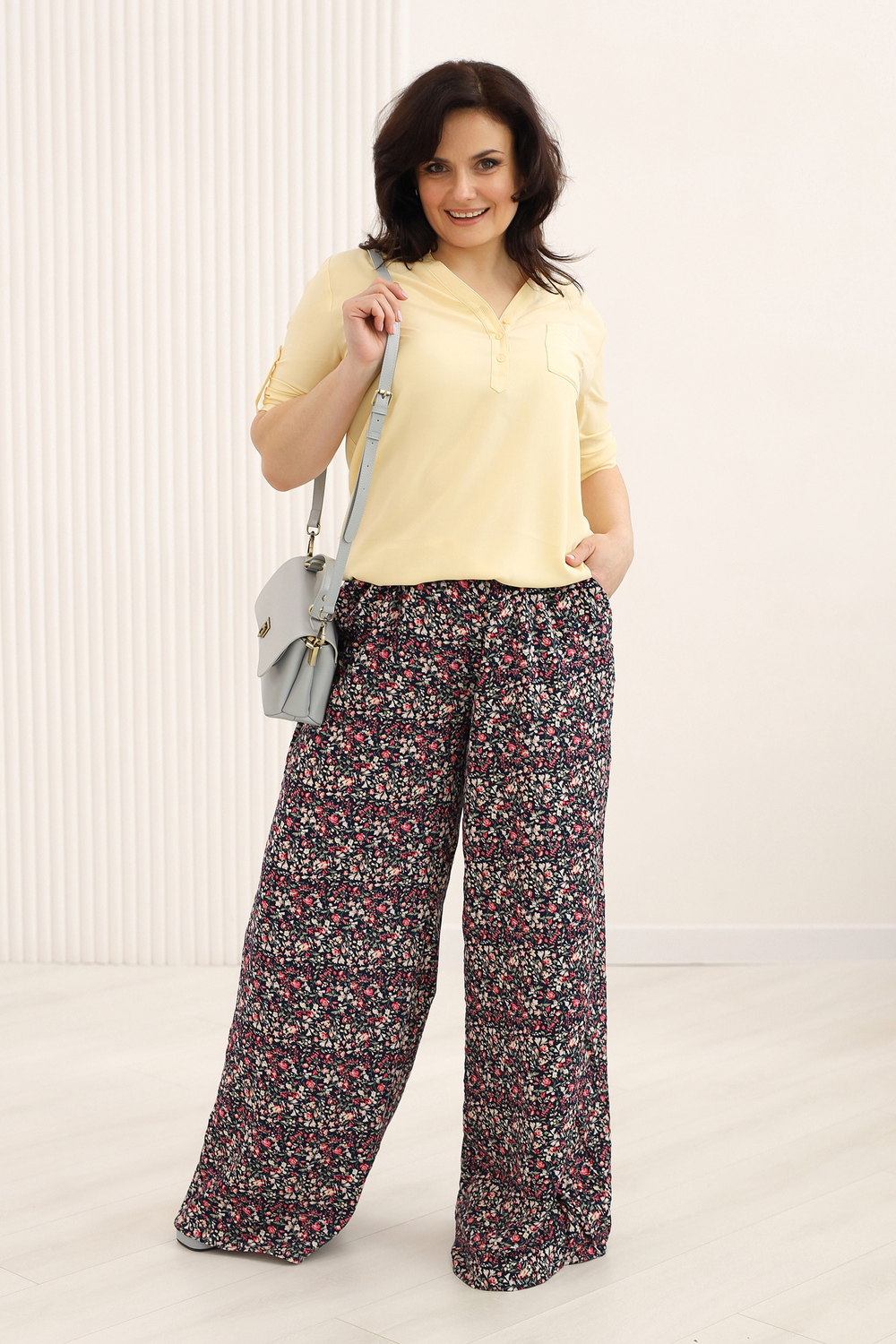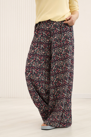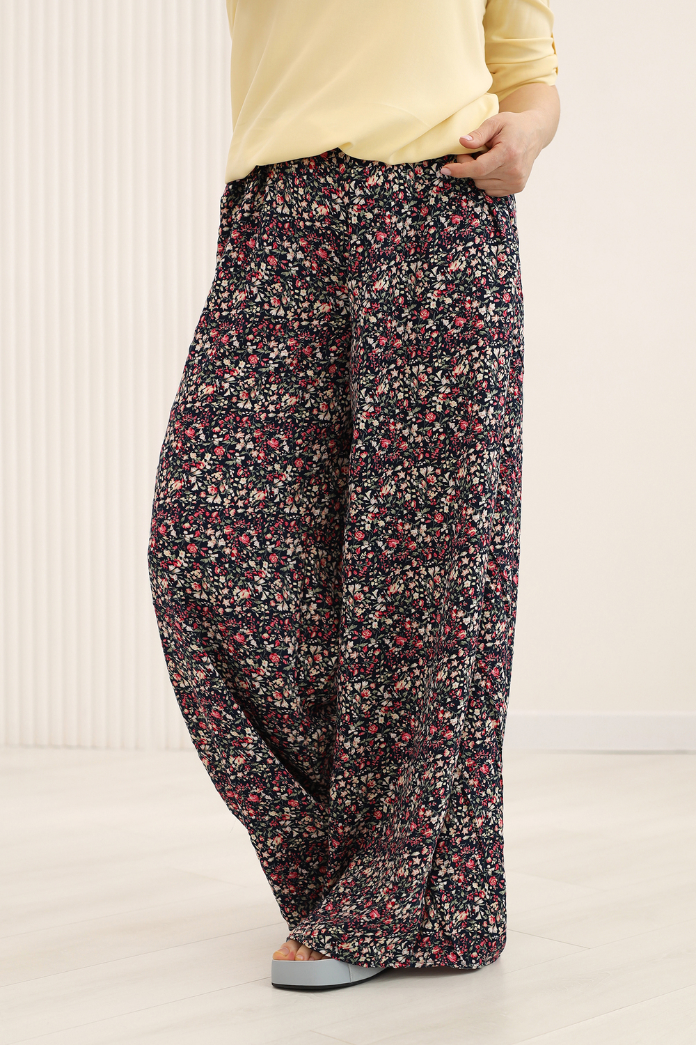 Внимание! Ткань во время первой стирки сядет в длину на 10 см. Учитывайте это при примерке и не обрезайте длину брюк до стирки. В ширину брюки усадки не дают. Брюки женские летние из тонкого вискозного штапеля, достаточно широкие, свободные и прекрасно подходят для летнего периода. В брюках стиля Бохо легко и комфортно двигаться. Они идеально подходят для жаркого лета, так как отшиты из 100% вискозного штапеля. Данный материал приятен к телу, не скатывается, не линяет. Как и все натуральные ткани, вискозный штапель сминается при ношении, но в интересной абстрактной набивке это совершенно не заметно. Лёгкие брюки создают летящий силуэт при движении, эффектно выглядят в летних путешествиях.