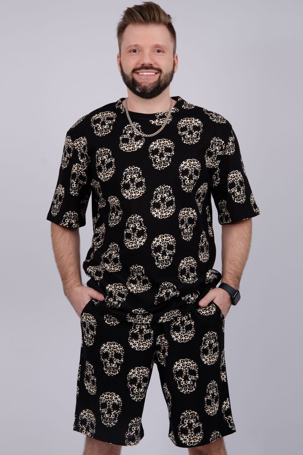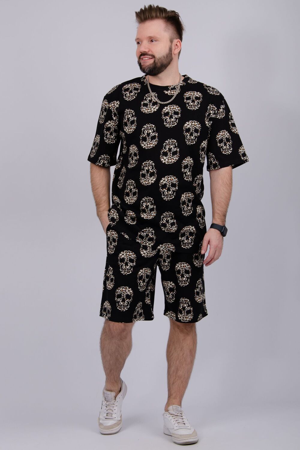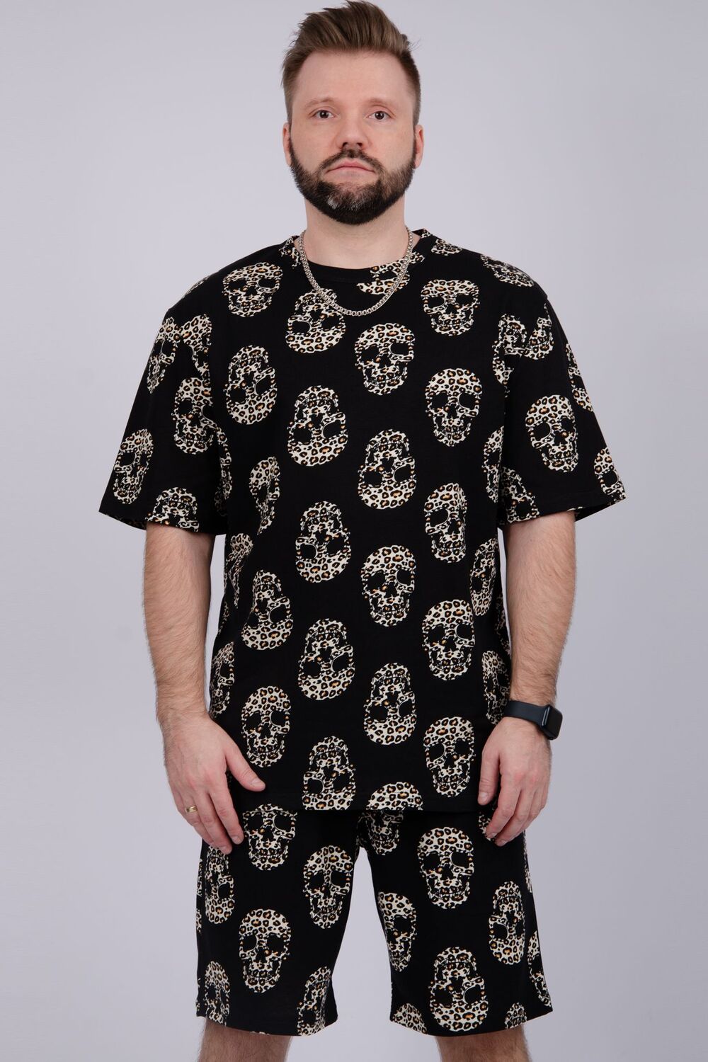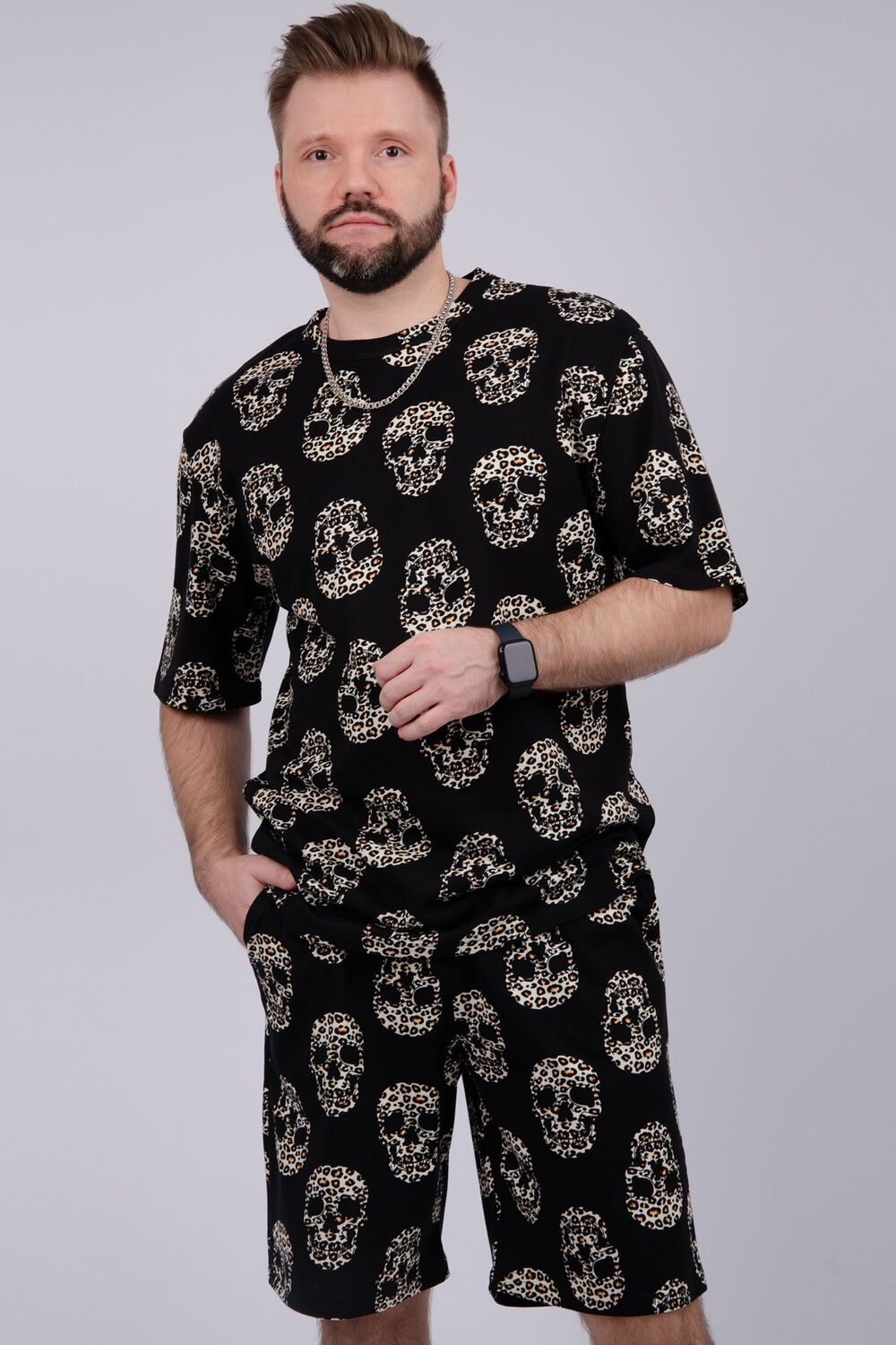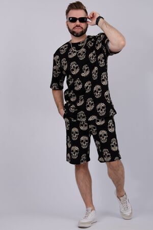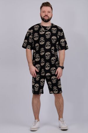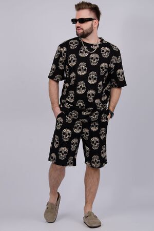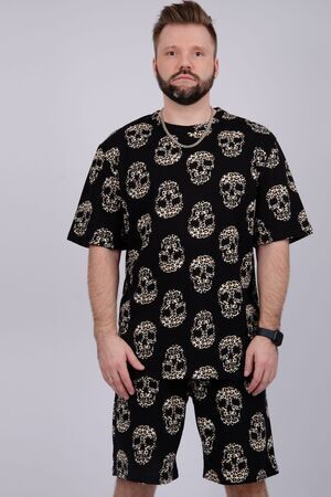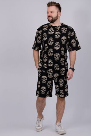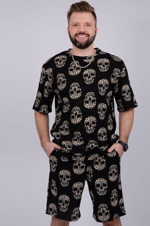 Костюм Харди изготовлен мягкого трикотажного материала. Комплект обеспечивает приятные ощущения на коже и отличную воздухопроницаемость. Включает футболку оверсайз и шорты, которые не сковывают движений и идеально подходят для комфортного использования.