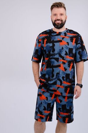 Костюм Харди изготовлен мягкого трикотажного материала. Комплект обеспечивает приятные ощущения на коже и отличную воздухопроницаемость. Включает футболку оверсайз и шорты, которые не сковывают движений и идеально подходят для комфортного использования.