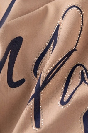 Уход: Рекомендуется бережная стирка при 30°C, вывернув наизнанку, чтобы сохранить блеск страз. Не гладить утюгом по принту.