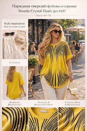 Нарядная оверсайз футболка со стразами Crystal Flow Luxe, большие размеры, арт. F8003 — откройте для себя идеальное сочетание комфорта и стиля с нашей новинкой.