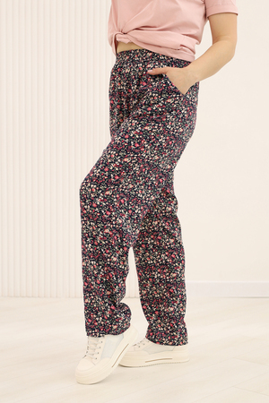 Внимание! Ткань во время первой стирки сядет в длину на 10 см. Учитывайте это при примерке и не обрезайте длину брюк до стирки. В ширину брюки усадки не дают. Брюки женские летние из тонкого вискозного штапеля, достаточно широкие, свободные и прекрасно подходят для летнего периода. В брюках легко и комфортно двигаться. Они идеально подходят для жаркого лета, так как отшиты из 100% вискозного штапеля. Данный материал приятен к телу, не скатывается, не линяет. Как и все натуральные ткани, вискозный штапель сминается при ношении, но в интересной абстрактной набивке это совершенно не заметно. Лёгкие брюки создают летящий силуэт при движении, эффектно выглядят в летних путешествиях.