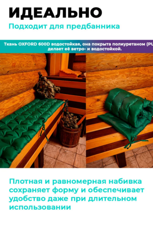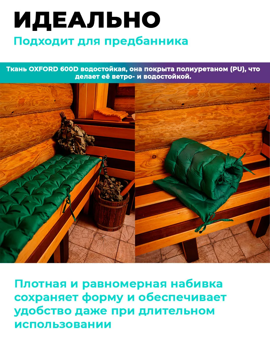Толщина около 8 см обеспечивает оптимальный баланс мягкости и упругости. Наполнитель не сбивается, сохраняет форму и равномерно распределяет нагрузку, делая сидение комфортным даже при длительном использовании. Отлично подходит для жестких скамеек и лавок.