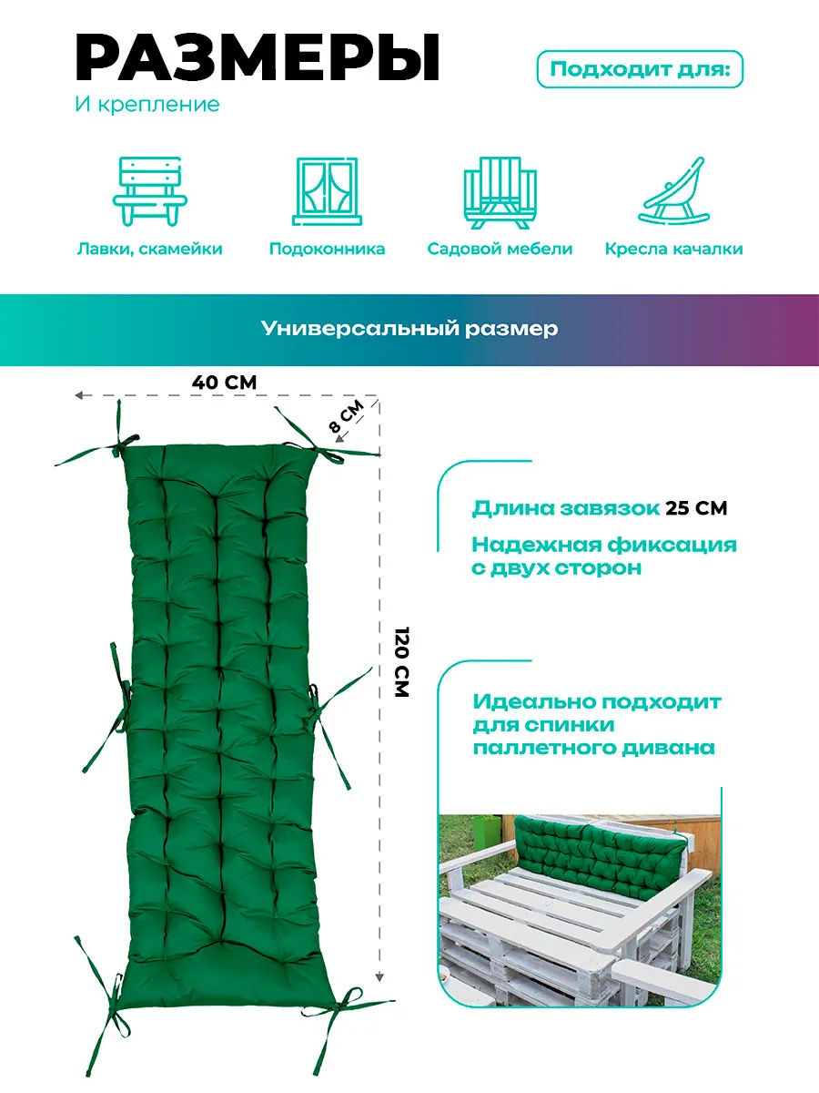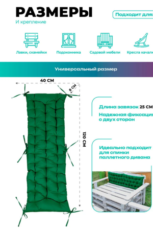 Размер 40×120 см (также ищут: 120×40, 40 на 120) подходит для большинства скамеек и садовой мебели. Завязки по краям надежно фиксируют изделие, предотвращая смещение во время использования.