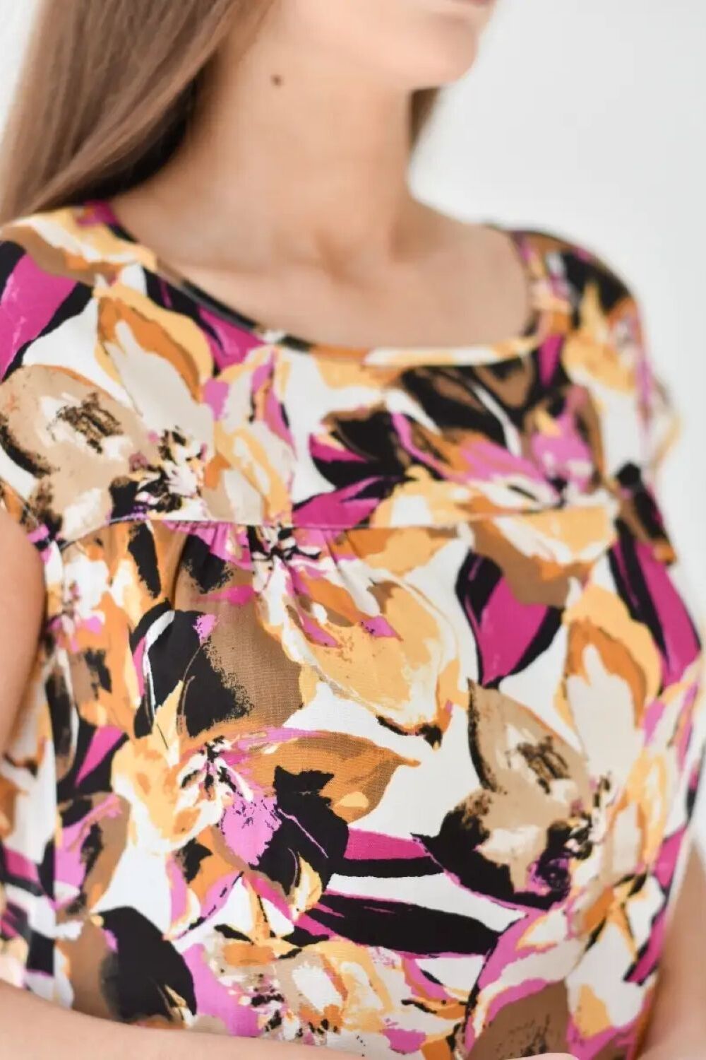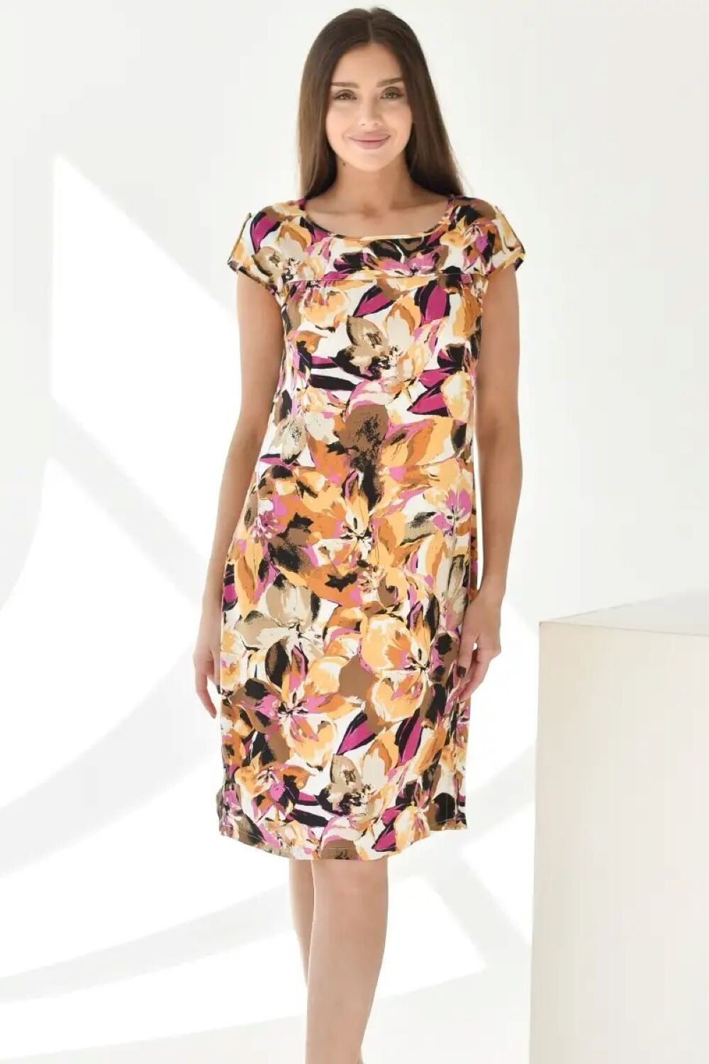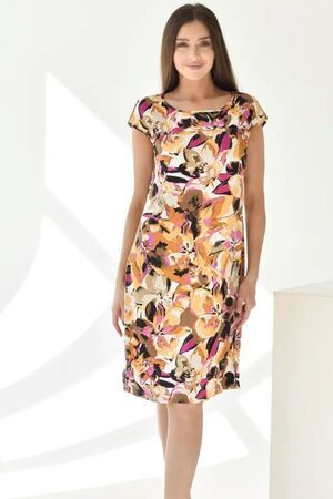 Легкое стильное летнее женское платье в цветочек «Триумф» из вискозы от российского текстильного бренда Batistcorp Ivanovo (Батист) станет идеальным выбором для жаркого летнего дня. Прямое воздушное платье длиной до колена и коротким рукавом обеспечит комфорт и свободу движений. Округлый вырез горловины, на плече расположены декоративные паты с застёжкой петли - пуговицы. За счет полуприлегающего покроя платье красиво смотрится на любом типе фигуры. В нём вы будете чувствовать себя комфортно и уверенно в любой ситуации. Размерный ряд этого платья представлен в широком спектре, что позволяет каждой женщине найти подходящий размер и насладиться стильным образом на лето. Это летнее платье сарафан от маленьких до больших размеров подходит как для полных женщин, так и для тех, кто ценит свободную и удобную одежду. Крой модели делает её универсальной для разных ситуаций: она подойдёт и для повседневного домашнего использования, и для выхода в свет. Модный принт с цветами придаст образу нежность и неповторимый шарм. Эта модель прекрасно подойдёт как высоким, так и невысоким девушкам. Покупая красивые вещи, вы создаете хорошее настроение и радуете себя и близких. Пусть ваш гардероб всегда будет наполнен стильными и удобными вещами на любой сезон!
