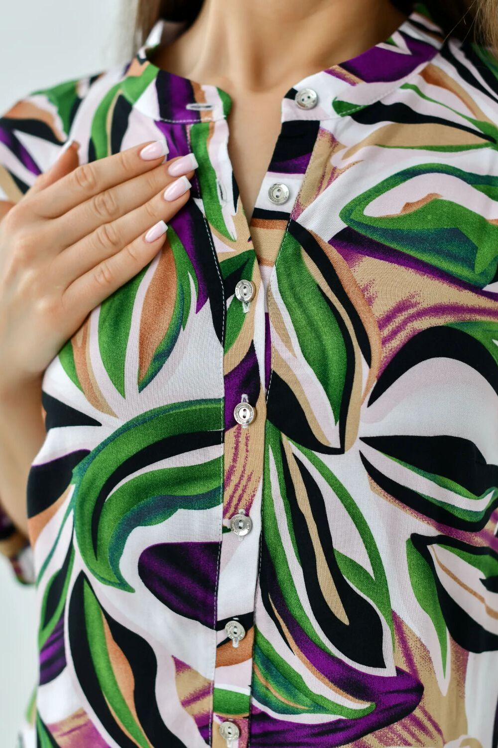 Летнее женское платье – туника от ивановского бренда Batistcorp (Батист). Платье Тропиканка прямого силуэта длинною чуть выше колена имеет снизу небольшие боковые разрезы для красоты и удобства. Оно невероятно универсальное и практичное. Идеально подходит для летней жары, а также для повседневной носки, встреч с подругами или, в некоторых случаях, даже для офиса. Горловина оформлена планкой с застёжкой на петли - пуговицы и стойкой. Рукава длинною 3/4 с регулировкой длины с помощью платы и петли-пуговицы. Вискозное платье-рубашка легкое и воздушное. Идеально подойдет на лето, в нем будет комфортно в жаркий летний день. Вискоза (штапель) – натуральная ткань растительного происхождения, приятная и мягкая на ощупь. Самое главное – это подобрать платье под свой стиль и фигуру. Молодежное модное платье миди (длина чуть выше колена) свободного кроя с укороченными рукавами длиной до середины предплечья подойдет для женщин разного возраста и размера. Скроет недостатки и подчеркнет достоинства. В глубокие карманы на боковых швах можно легко положить маленькие ценные вещи - телефон, ключи или помаду. Представлен широкий размерный ряд. Теплые светлые цвета, нежный цветочный принт, яркий дизайн – замечательный подарок для друзей и родных. Необычное платье рубашка в пляжном стиле. Подойдет как для юной девочки, так и для женщины в элегантном возрасте. Подарите маме, сестре, дочке - подростку, подруге, племяннице. Отлично сядет на худых, на полных дам, а также на беременных. Прекрасное поздравление с окончанием учебного года, с достижением важной цели, с днем рождения или даже без повода. Путешествуйте и проводите время дома, отдыхайте на даче или занимайтесь любимым хобби в городе, наше платье – универсальная одежда, которая подойдет для большинства случаев.