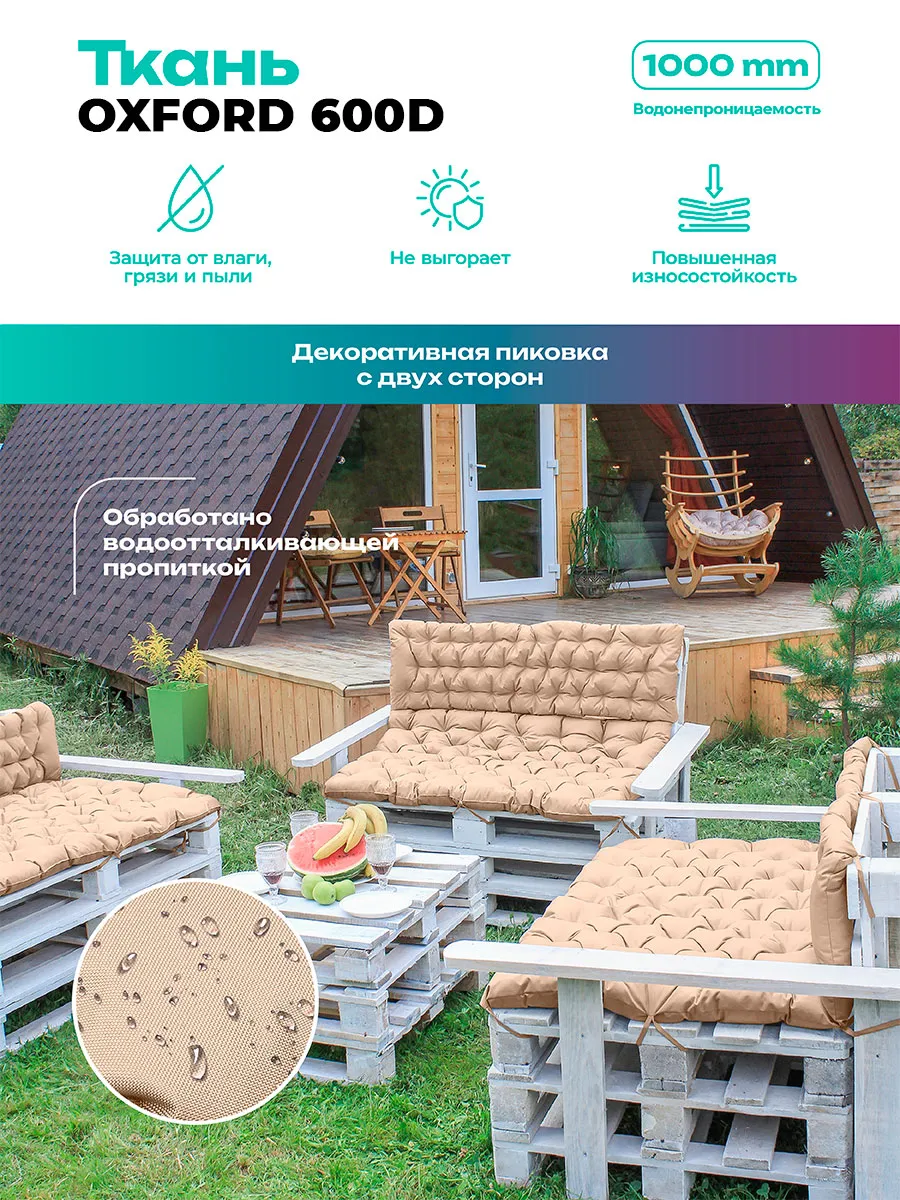 Стильная подушка для дачи гармонично сочетается с деревянной, ротанговой и плетеной мебелью, создавая уютную атмосферу. Практичный водонепроницаемый матрас для улицы станет отличным решением для отдыха на свежем воздухе.