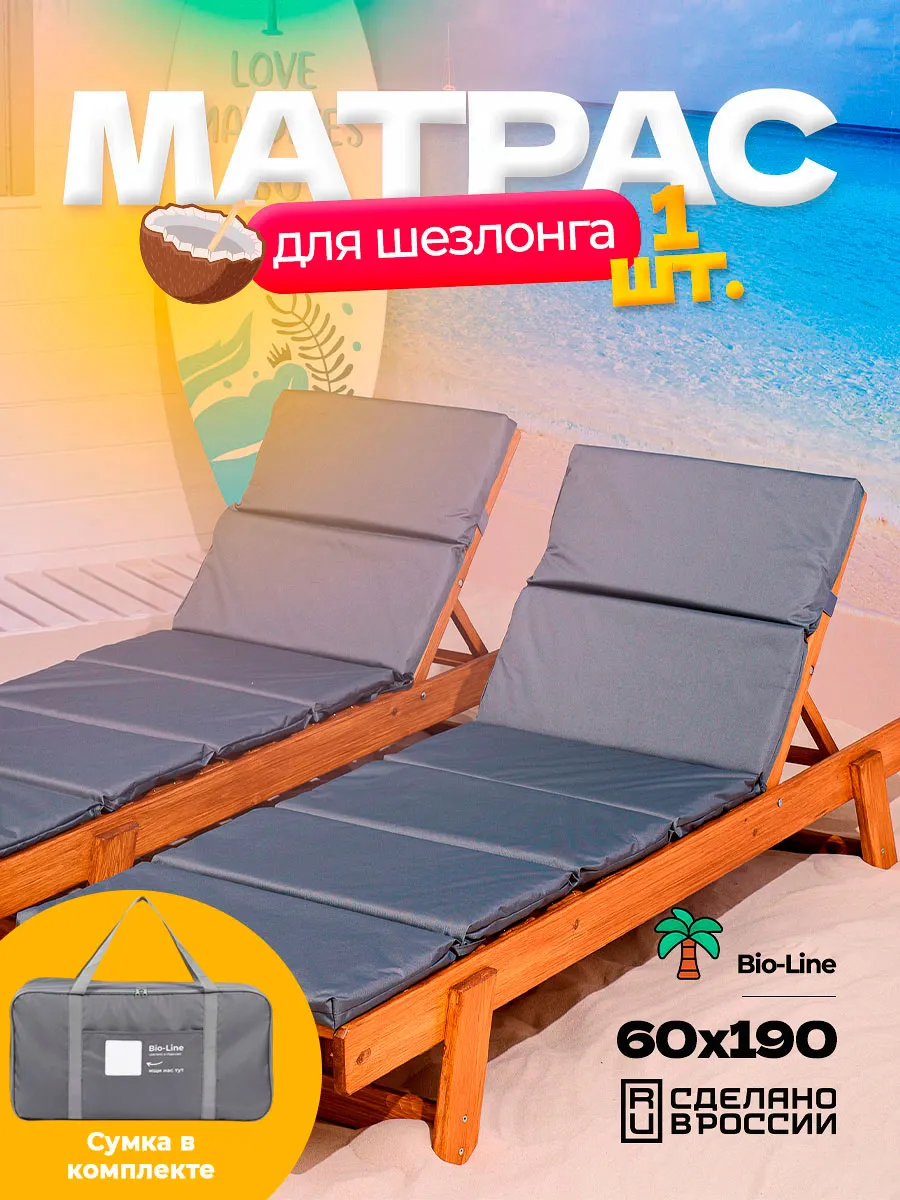 Матрас для шезлонга, лежака 60х190 сегментный SZO, Oxford 600D, поролон, пенополиуретан, непромокаемый Bio-Line