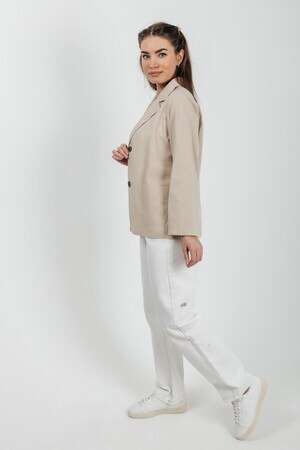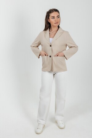 Лёгкий женский пиджак без подклада станет незаменимой вещью в весенне‑летнем гардеробе. Благодаря отсутствию подклада модель особенно комфортна: она не стесняет движений и не создаёт лишнего тепла даже в жаркую погоду. Классический дизайн с чёткими линиями и лаконичными деталями легко вписать в любой стиль: наденьте его с офисной юбкой для строгого образа или с джинсовыми шортами для прогулки. Застёжка на пуговицы, удобные карманы и продуманный крой делают эту модель практичной и функциональной. Пиджак гармонично сочетается с разными элементами гардероба — от платьев до брюк. Уход прост: деликатная стирка при 30∘C и аккуратная глажка.