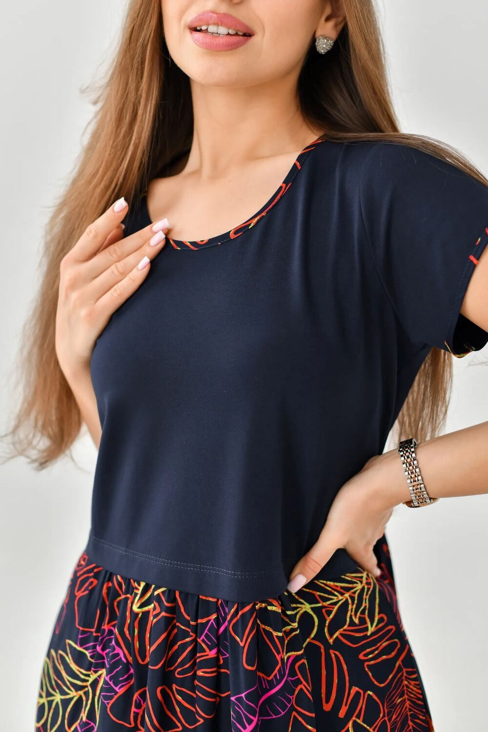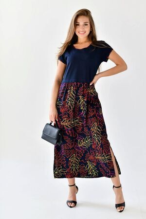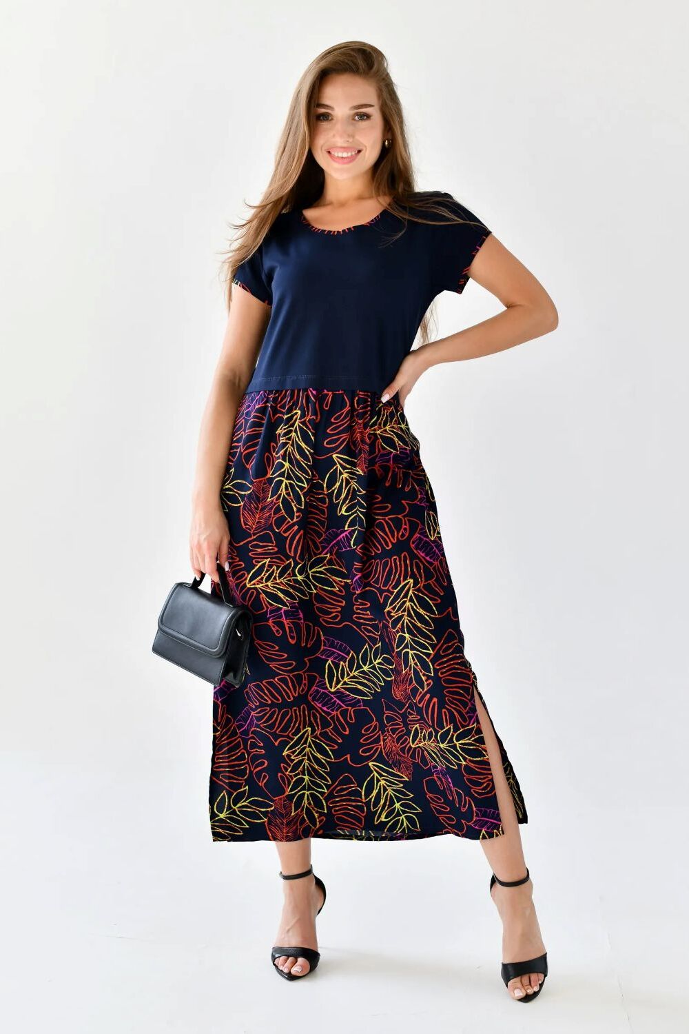 Легкое длинное стильное летнее женское платье «Премьера» из вискозы 100% от российского текстильного бренда Batistcorp Ivanovo (Батист) станет идеальным выбором для жаркого летнего дня. Воздушное платье миди с округлым вырезом горловины и коротким рукавом обеспечит комфорт и свободу движений. Платье прямого А-силуэта состоит из верхней трикотажной части, имитирующей футболку, и нижней части, изготовленной из штапельного полотна. Пышная юбка с классическими вырезами в боковых швах собрана на талии в сборку, которая декорируют силуэт, делая его женственным и нарядным. Молодежное платье с принтом. За счет свободного покроя платье красиво смотрится на любом типе фигуры. В нём вы будете чувствовать себя комфортно и уверенно в любой ситуации. Размерный ряд этого платья представлен в широком спектре, что позволяет каждой женщине найти подходящий размер и насладиться стильным образом на лето.